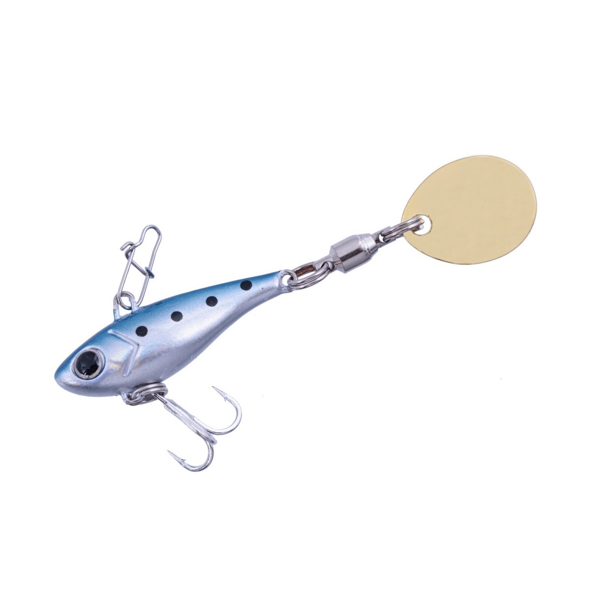 Крупный, почти круглый лепесток при вращении создает шум и оставляет за собой гидродинамическую струю, волны от которой передаются на боковую линию хищника. Рыба, охотящаяся на удалении, не может оставить без внимания перемещение потенциальной добычи, поэтому подходит ближе и атакует. Корпус приманки имитирует довольно упитанную рыбку. Выразительные глаза служат точкой атаки, за счет чего промахи случаются редко.