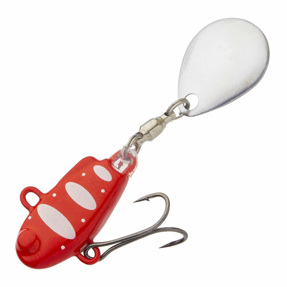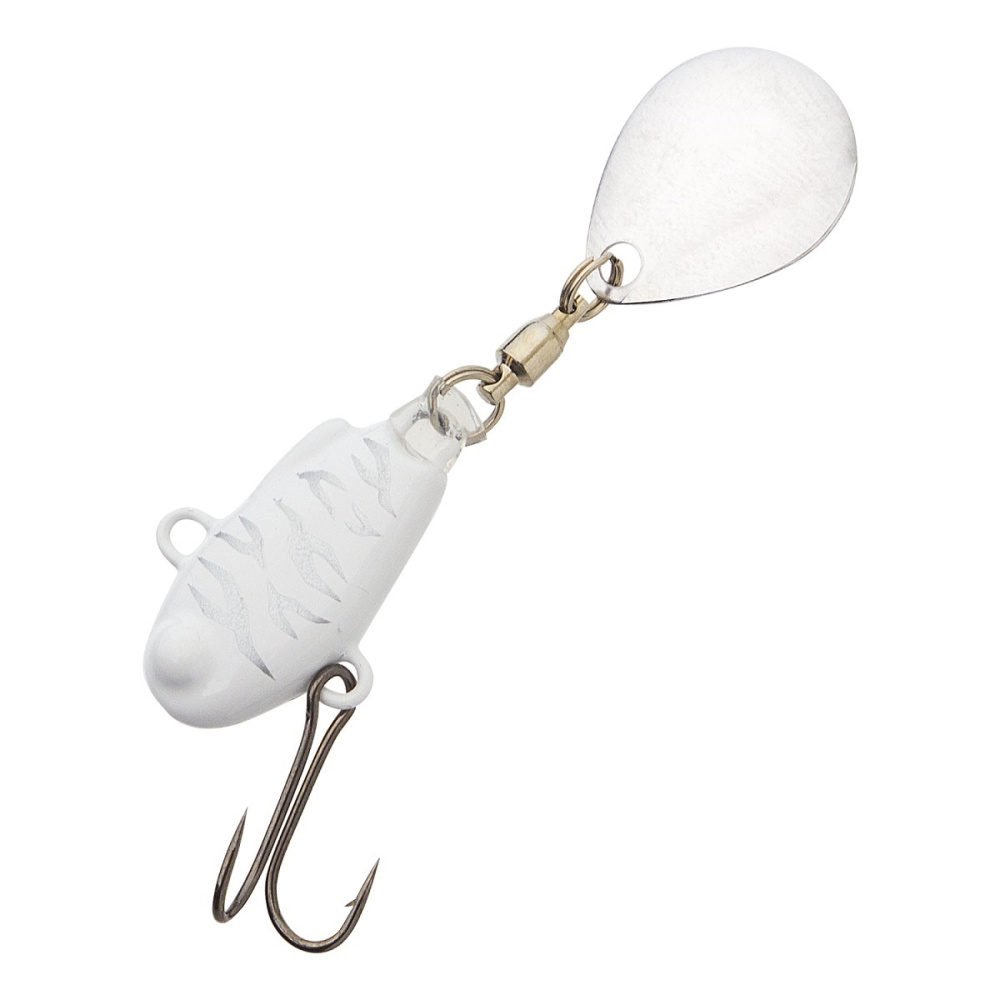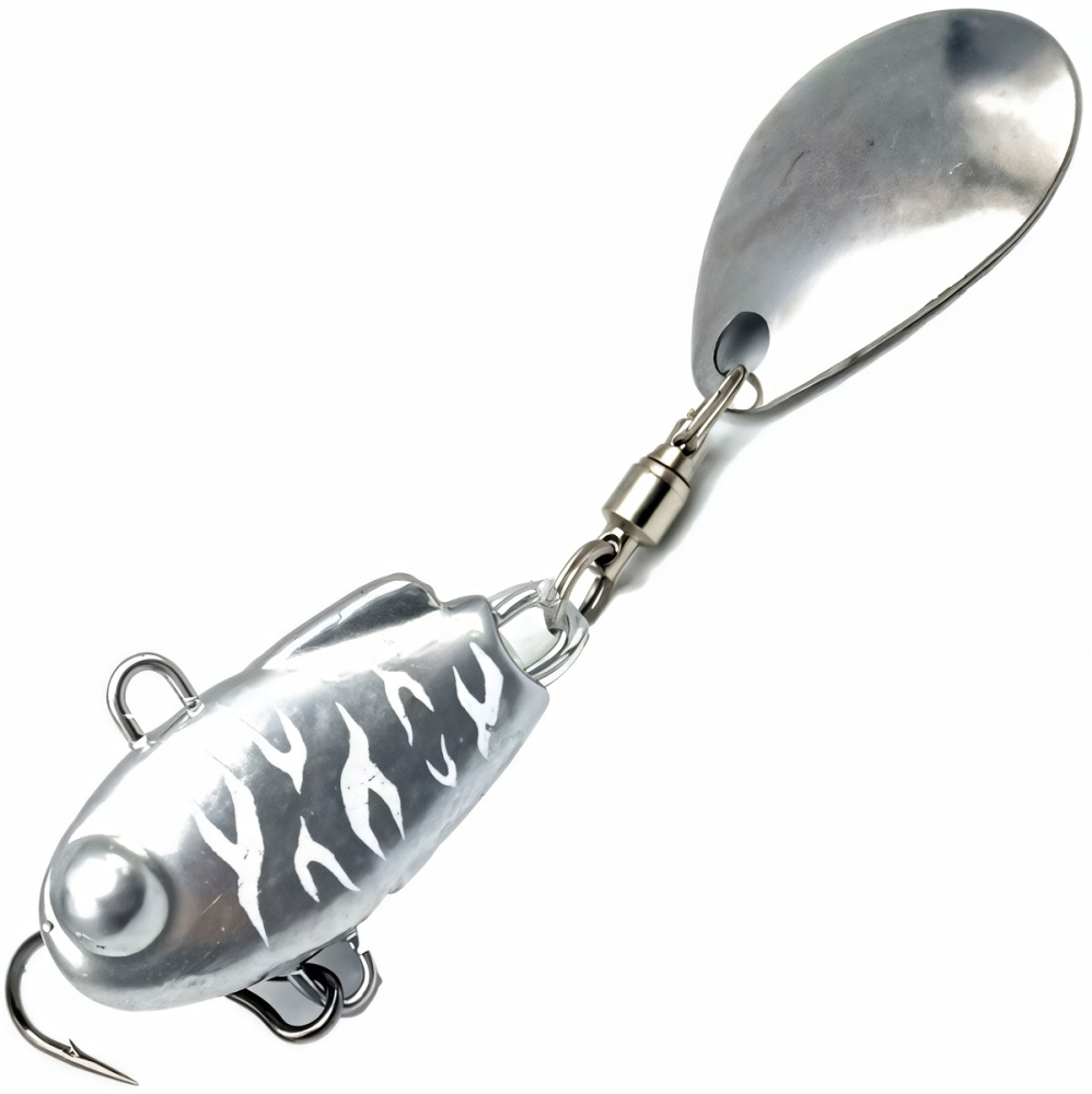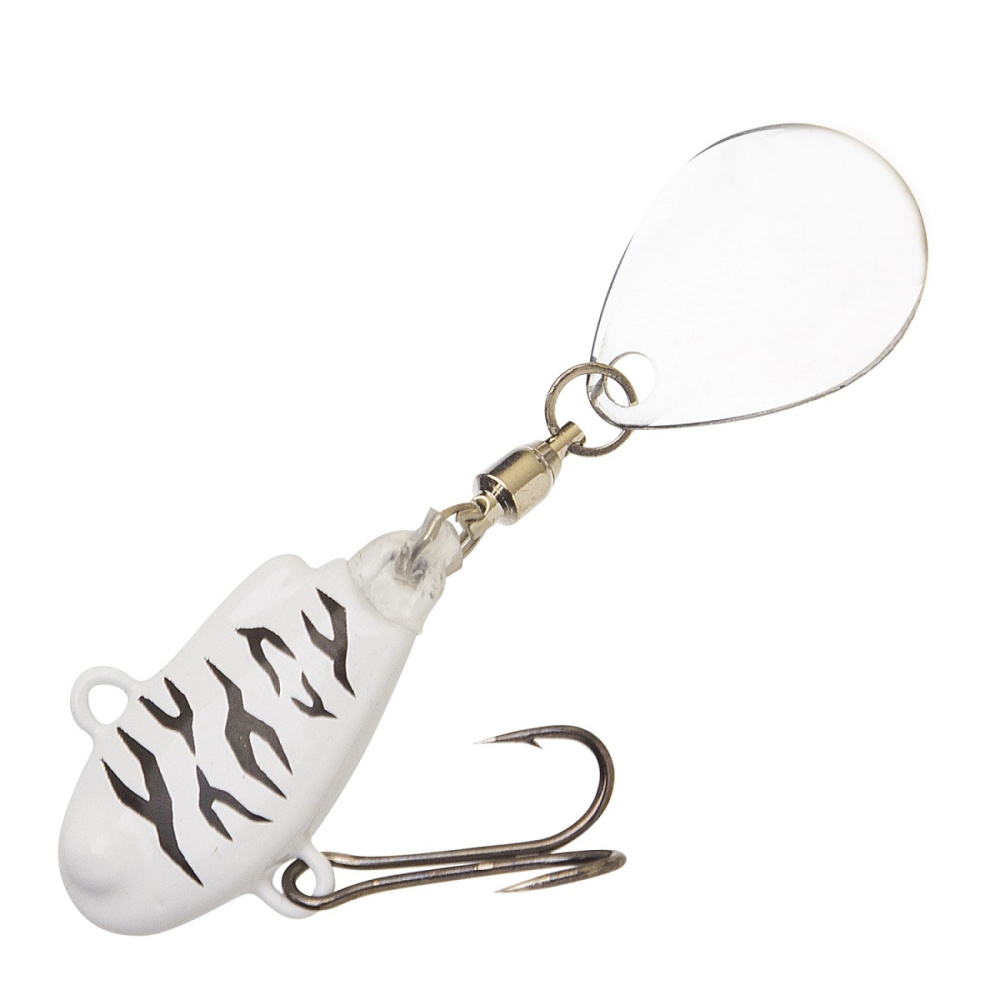 Металлическое тело тейл-спиннера наделяет его невероятными полётными характеристиками. На приманку установлен лепесток из нержавеющей стали. Он расположен на вертлюжке с подшипником, обеспечивающий ему максимально свободное вращение.