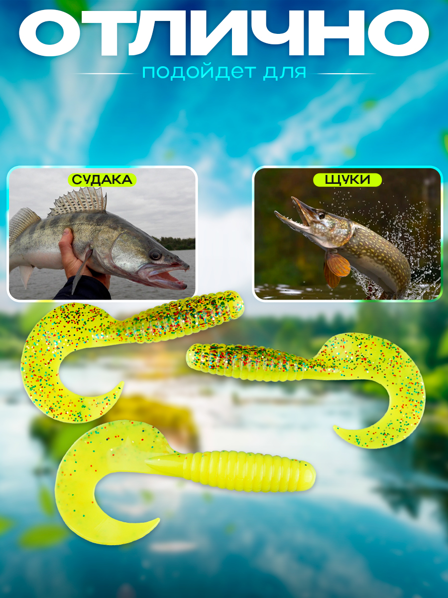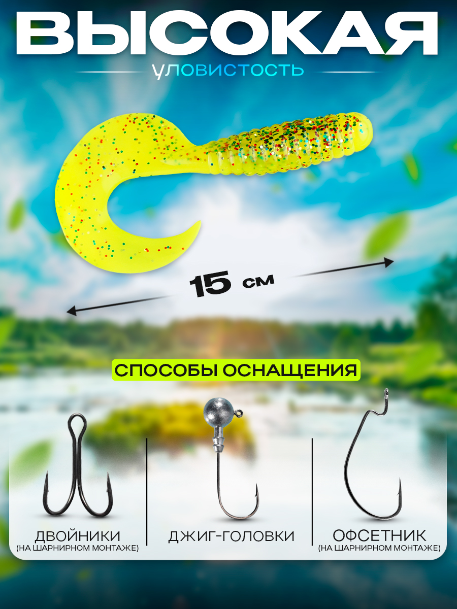 Твистеры Relax 6" 15см цвет TL086 (желтый, с блестками) (5шт) (VR6)