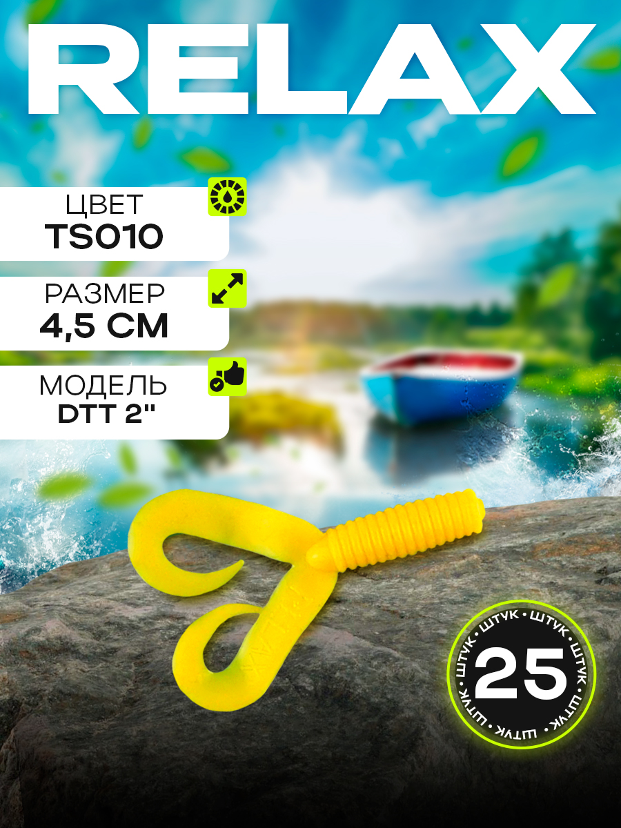 Твистеры Relax DTT 2" 4,5см цвет TS010 (желтый) (25шт) (DTT2)