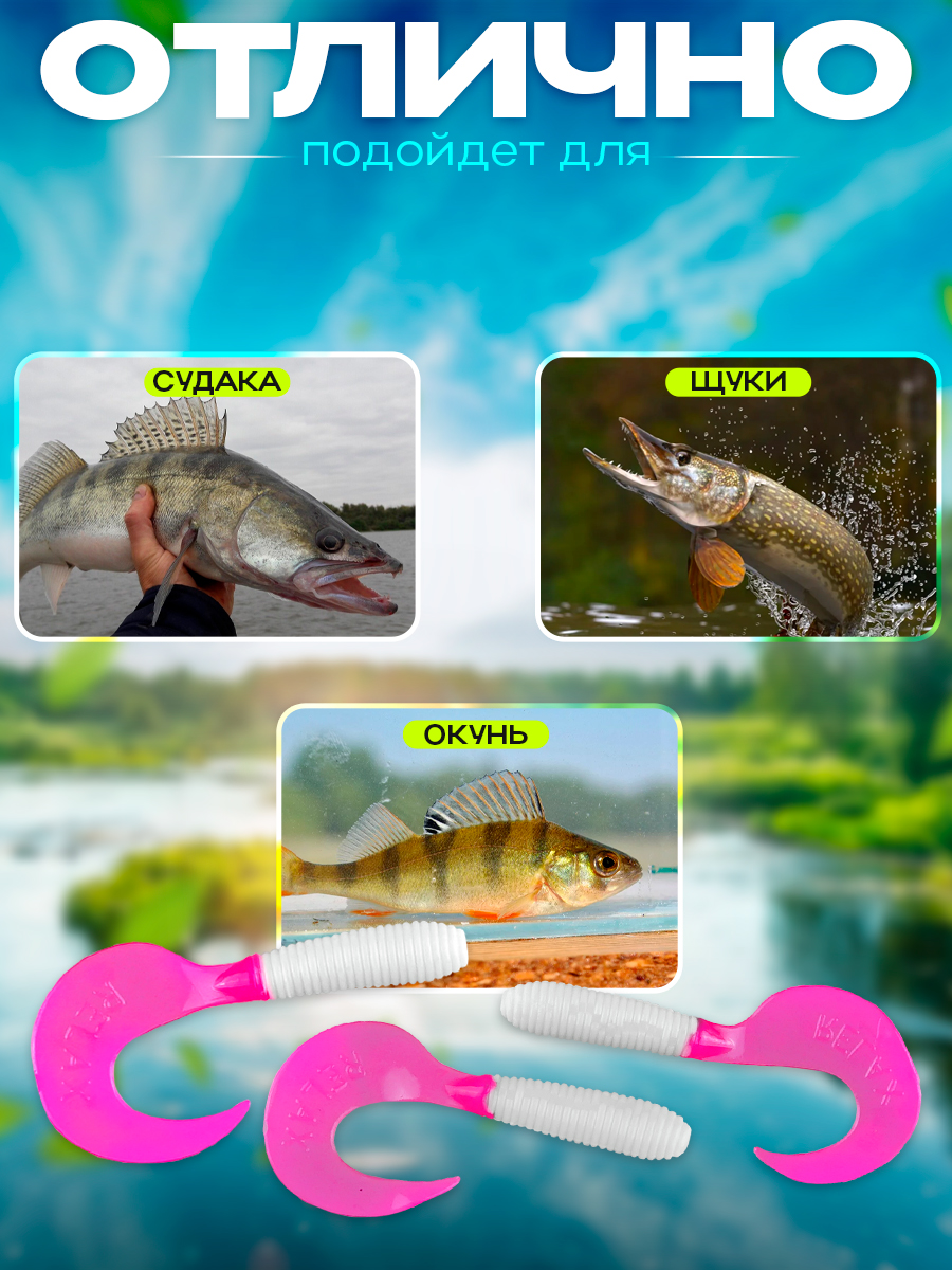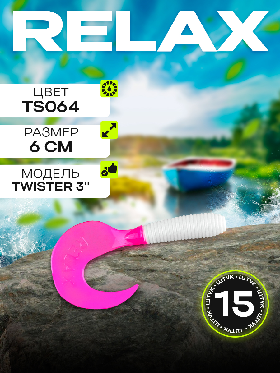 Твистеры Relax 3" 6см цвет TS064 (белый, лиловый) (15шт) (VR3)
