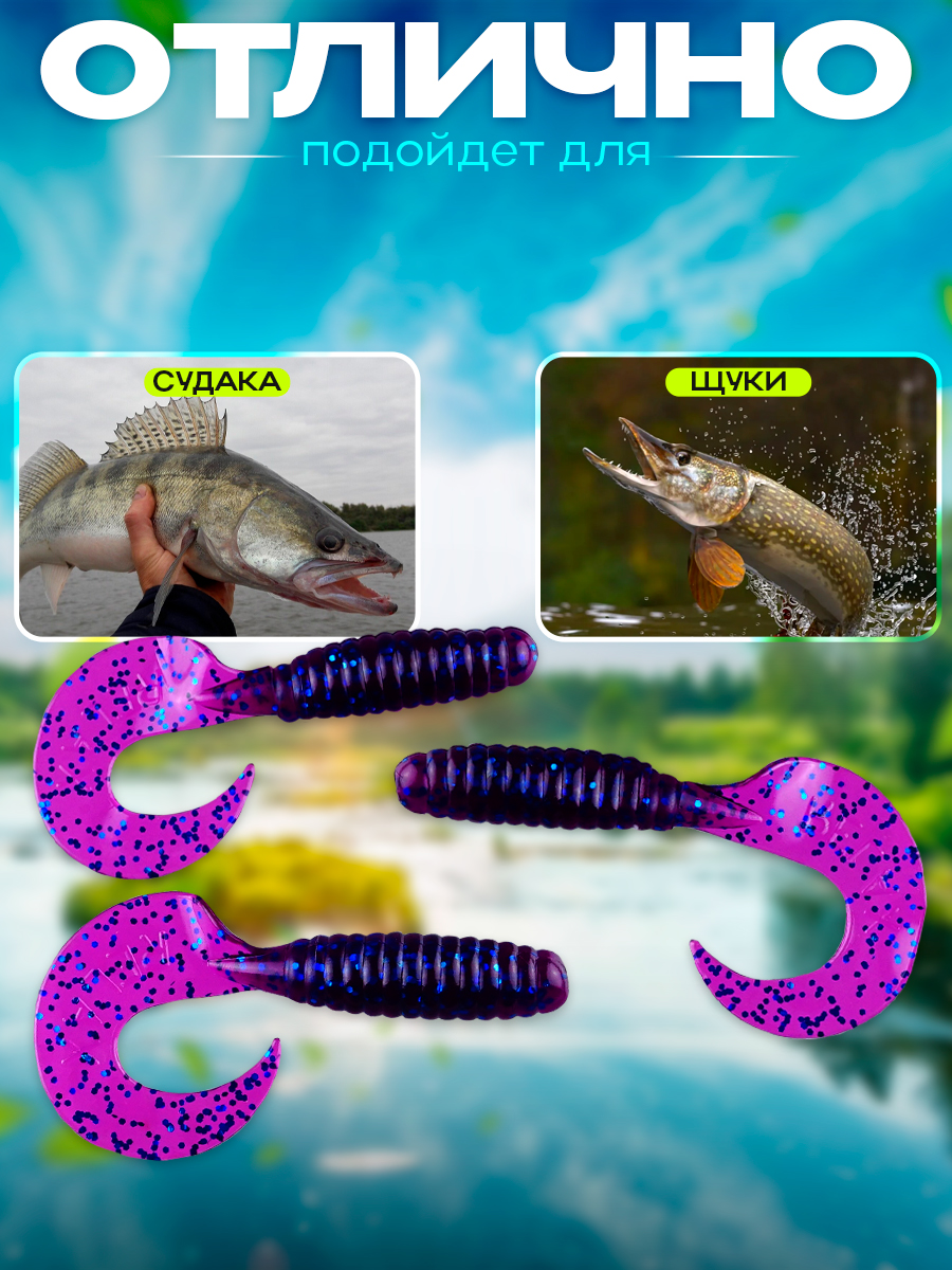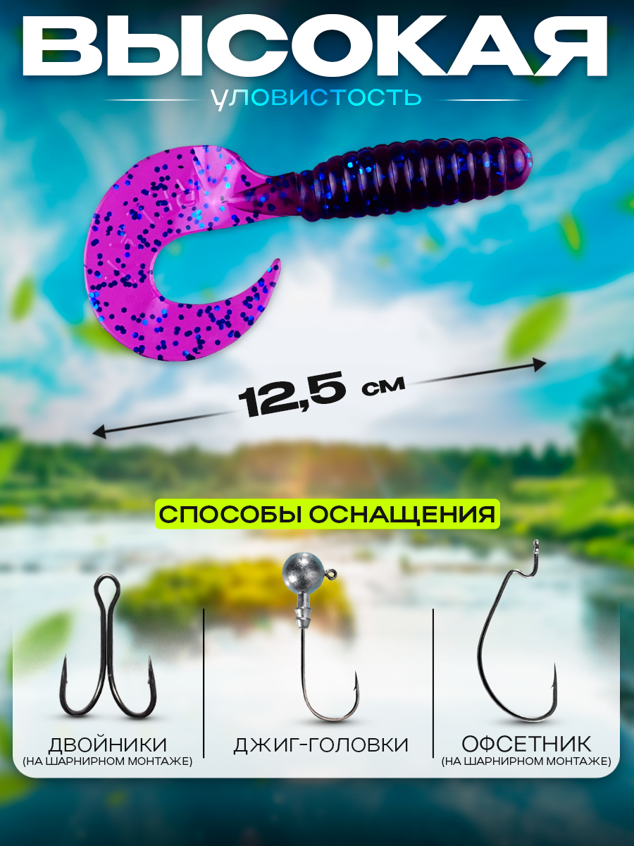 Твистеры Relax 5" 12,5см цвет TS165 (фиолетовый, синие блески) (10шт) (VR5)