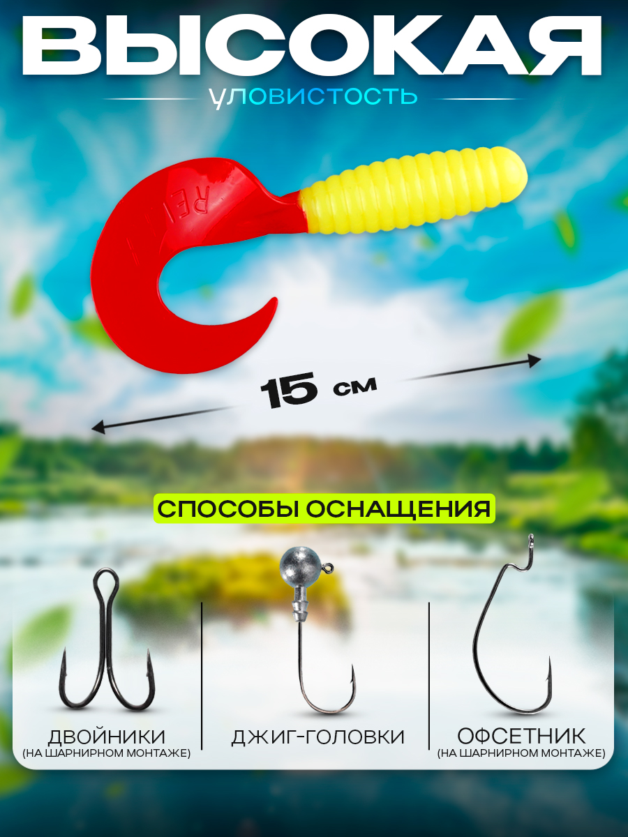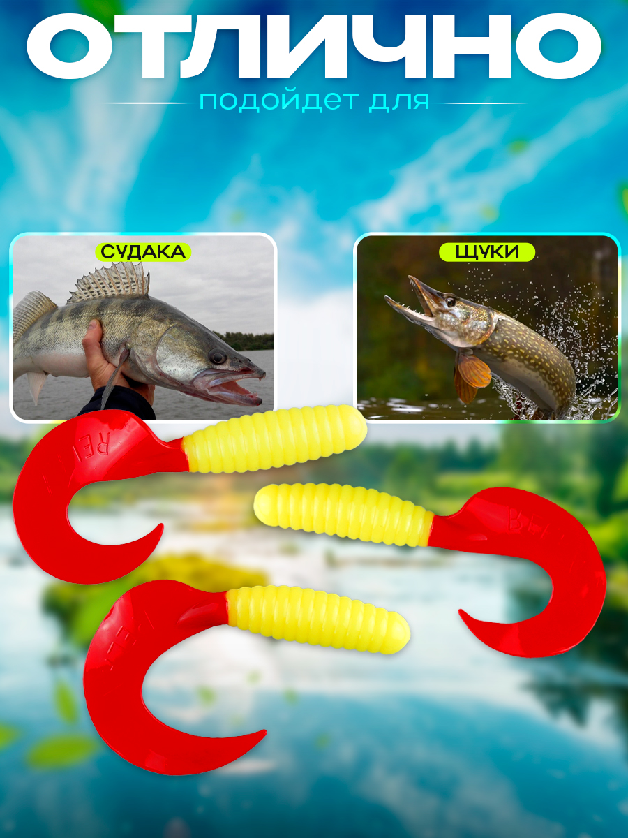 Твистеры Relax 6" 15см цвет TS097 (салатовый, красный) (5шт) (VR6)