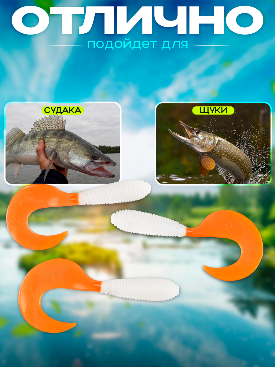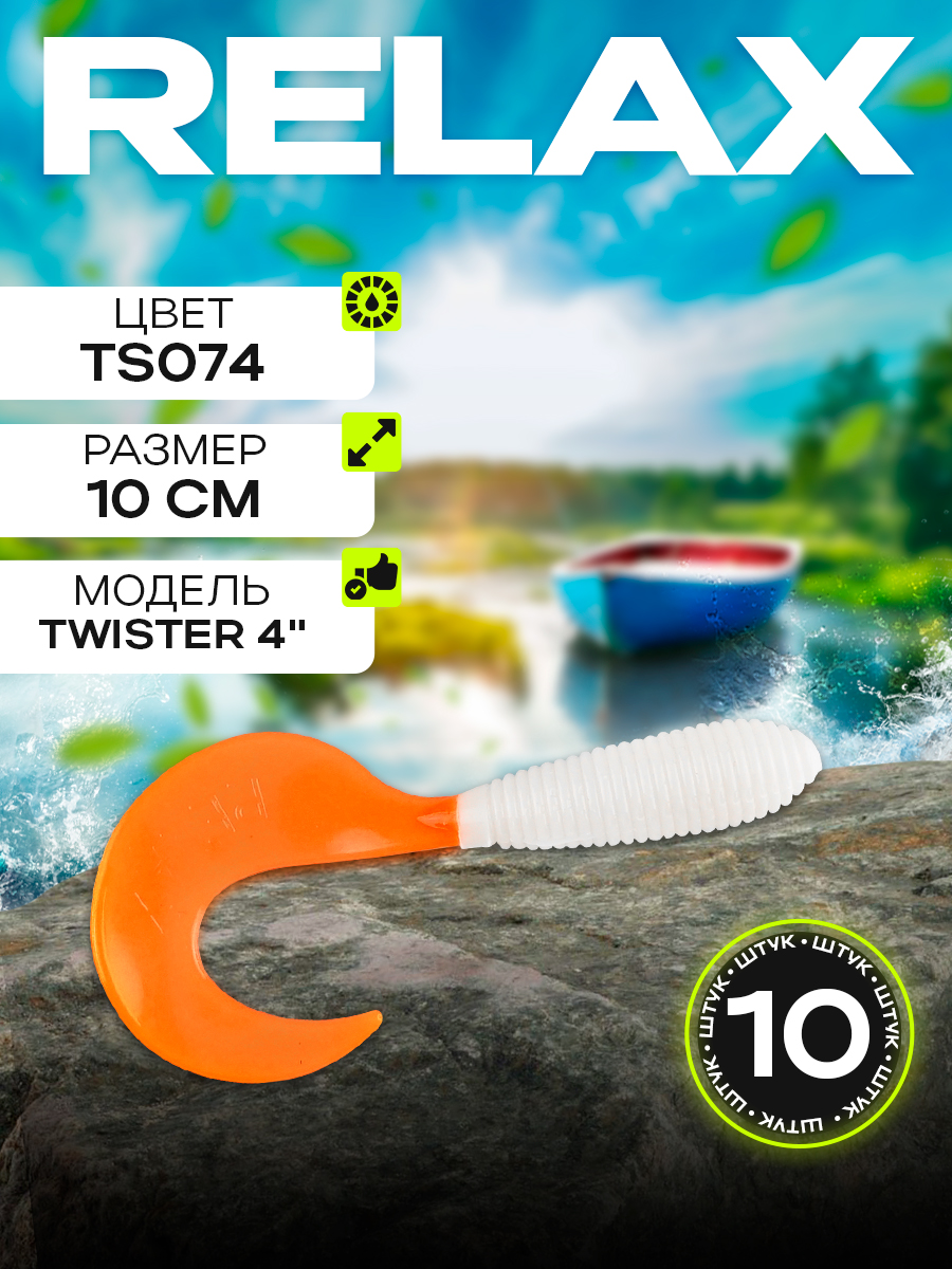 Твистеры Relax 4" 10см цвет TS074 (белый, оранжевый) (10шт) (VR4)