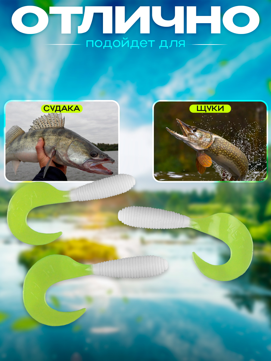 Твистеры Relax 4" 10см цвет TS275 (белый, зеленый) (10шт) (VR4)