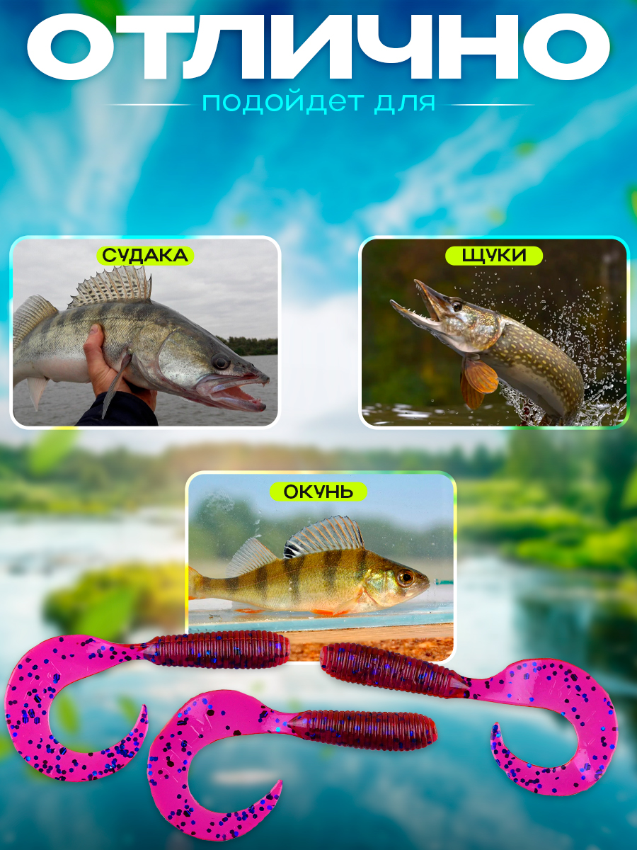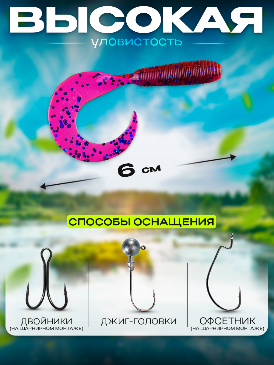 Твистеры Relax 3" 6см цвет TS303 (фиолетовый, синие блестки) (15шт) (VR3)