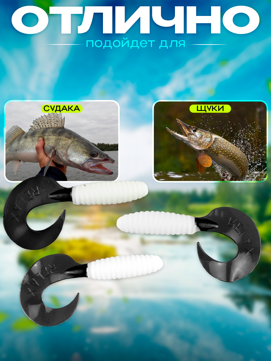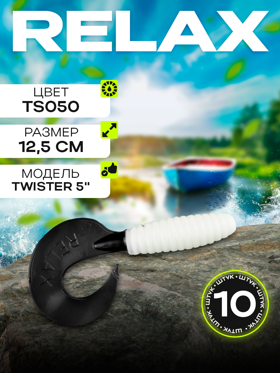 Твистеры Relax 5" 12,5см цвет TS050 (белый, черный) (10шт) (VR5)