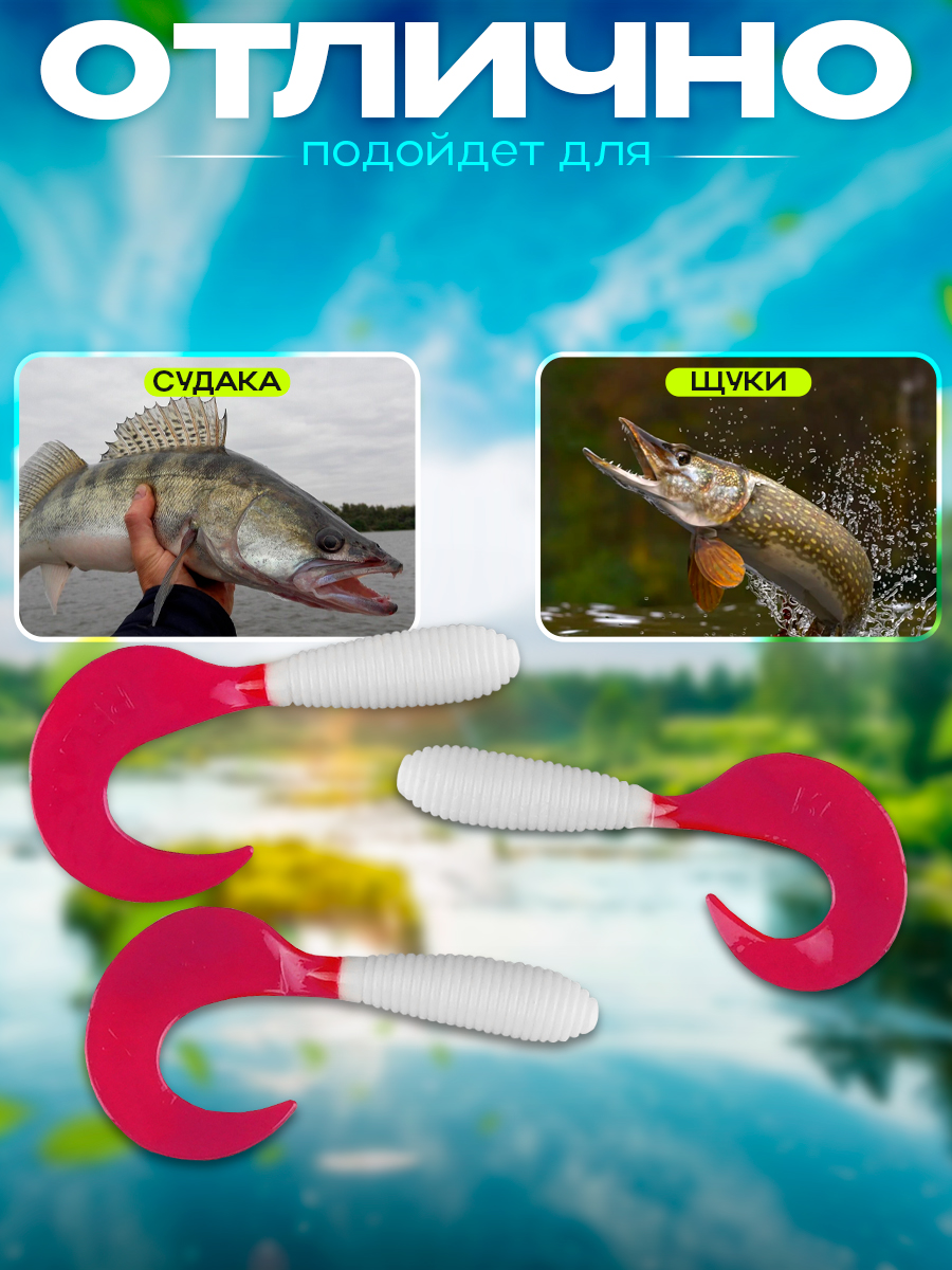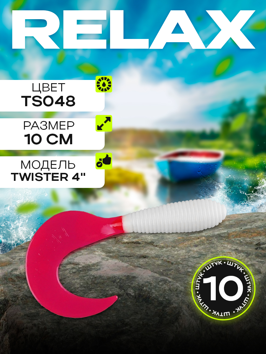 Твистеры Relax 4" 10см цвет TS048 (белый, красный) (10шт) (VR4)