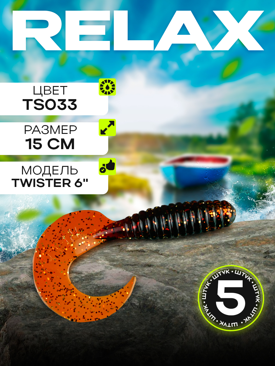Твистеры Relax 6" 15см цвет TS033 (машинное масло, с блестками) (5шт) (VR6)