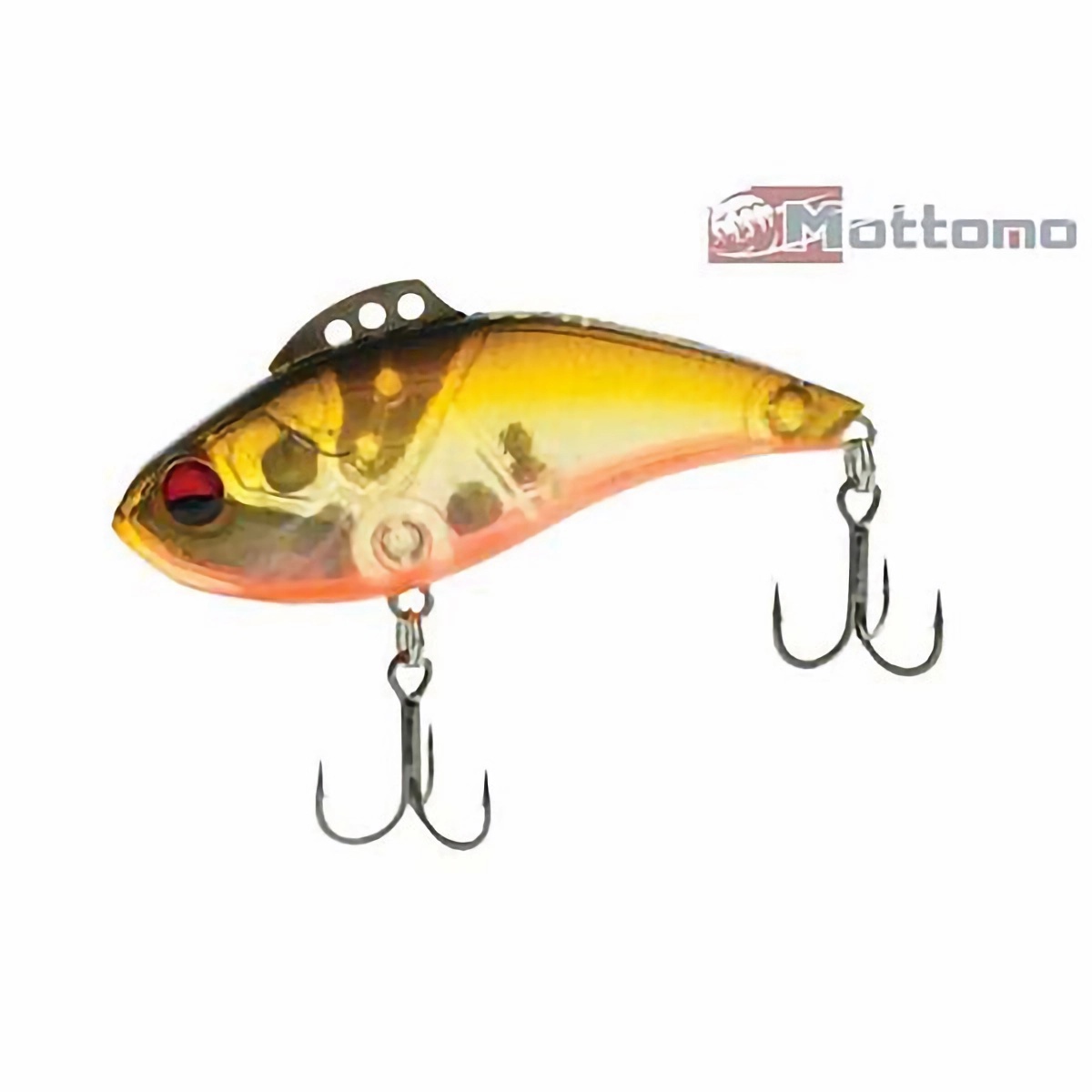 Имеет три точки крепления: первая от головы для ловли в заброс с берега, вторая и третья для ловли с лодки и со льда. Классическая, хотя и немного удлинённая форма и звонкая погремушка, что немаловажно именно для раттлинов. Характер игры высокочастотный с минимальной амплитудой. Прочнейший корпус и фурнитура, впрочем как и у всех воблеров марки Mottomo.