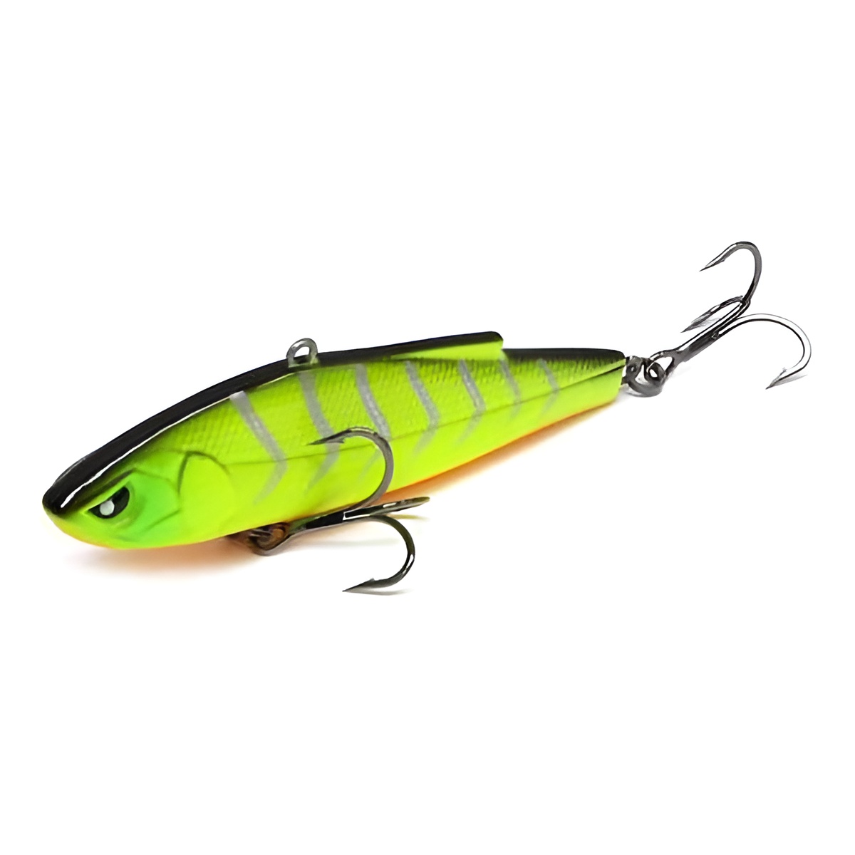 Длина виба 7,8 см, масса 26 гр. Балансировка и солидный вес позволяют сохранять стабильность в проточных акваториях. Заглубление full range дает возможность обловить все уровни водоема. Приманка тонущая, потому рационально применять ее в местах без высоких водорослей. Проектировалась линейка воблеров категории vibration для судаковой, щучьей и трофейной окуневой охоты.