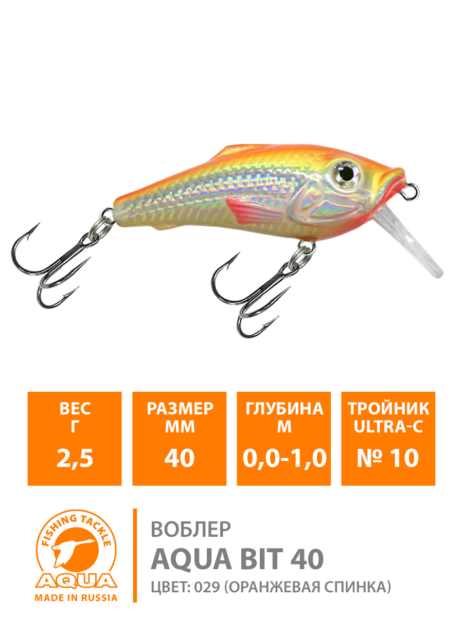 Воблер Aqua Bit плавающий 40мм 3гр до 1м цвет 029 (оранжевая спинка)