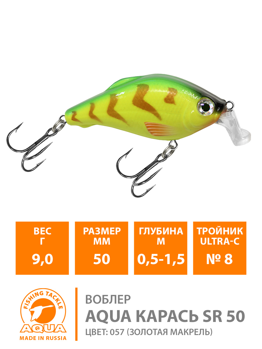 Воблер Aqua Карась SR плавающий 50мм 9гр 0,5-1,5м цвет 057 (золотая макрель)