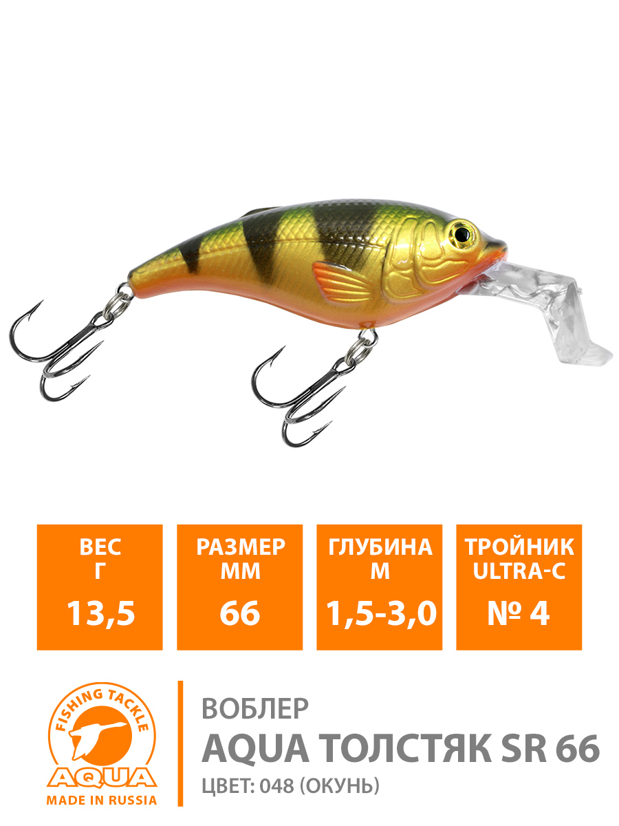 Воблер Aqua Толстяк SR плавающий 66мм 13,5гр 1,5-3м цвет 048 (Окунь)