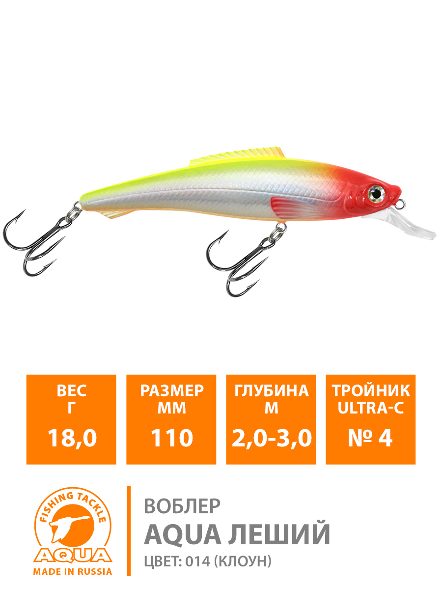 Воблер Aqua Леший плавающий 110мм 18гр 2-3м цвет 014 (клоун)