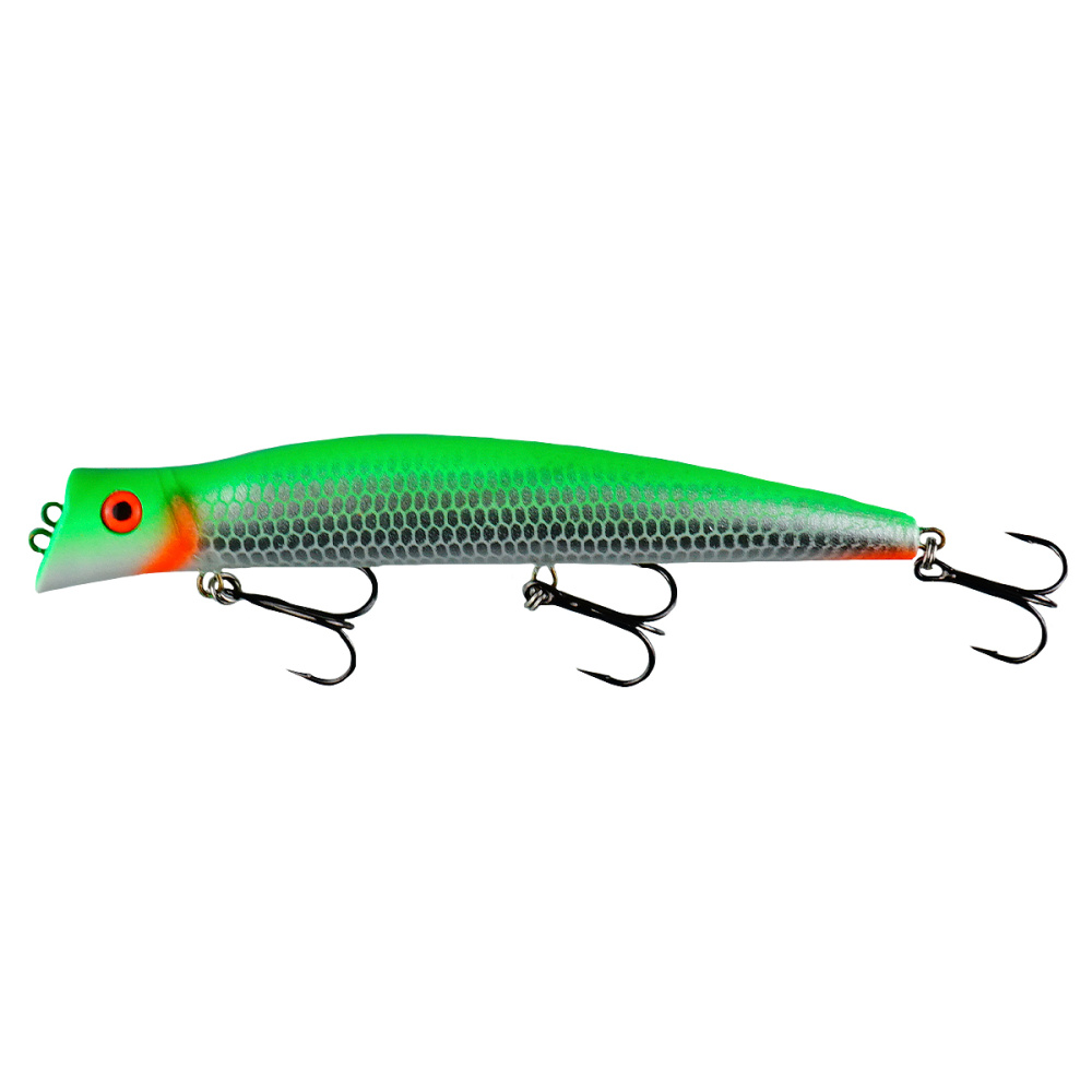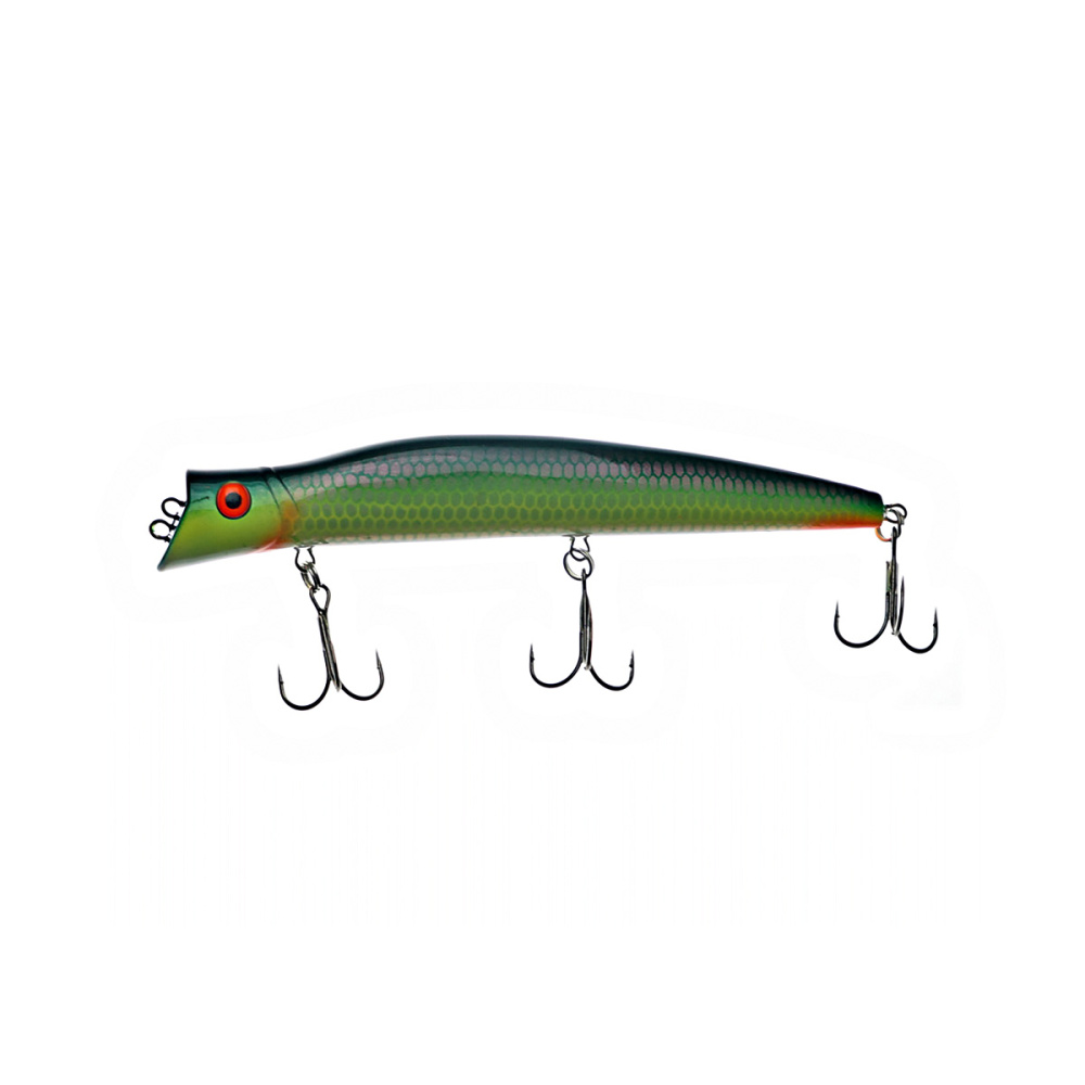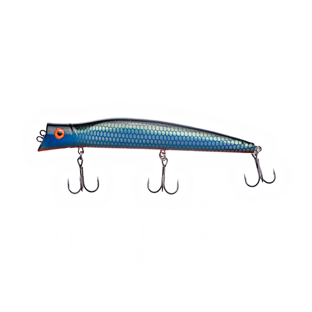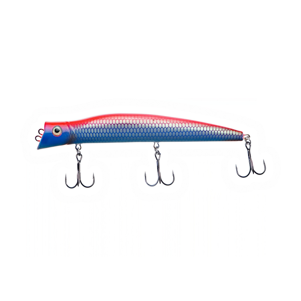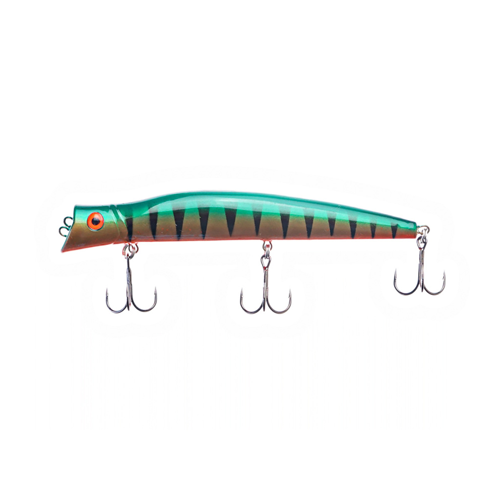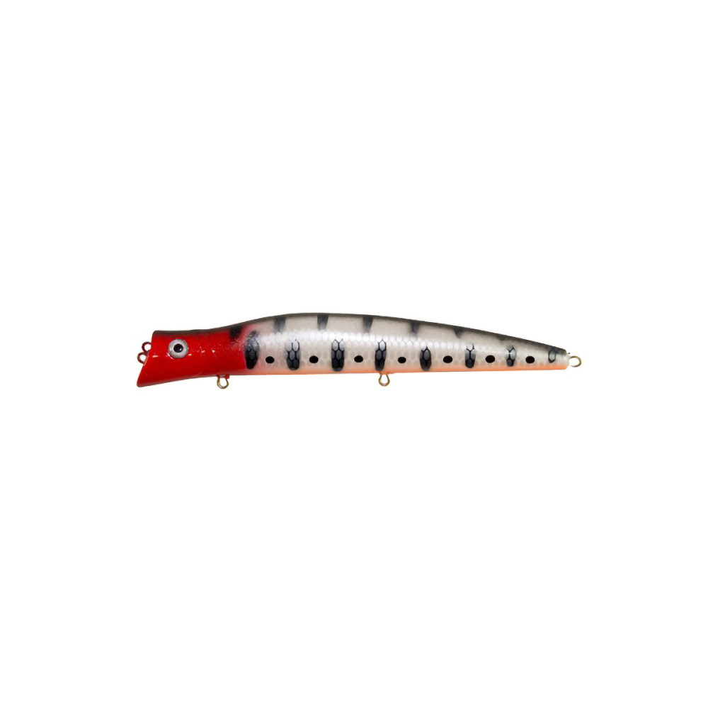 Если леску закрепить за нижнюю петельку, воблер меняет игру и идет под самой поверхностью. Воблер начинает играть более амплитудно с осевыми доворотами корпуса, привлекательно двигаясь даже на самых медленных скоростях проводки.