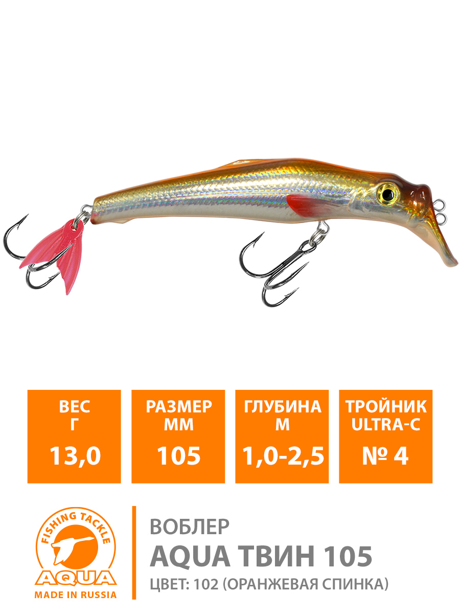 Воблер Aqua Твин плавающий 55мм 2,5гр до 1м цвет 102 (оранжевая, золотистая спинка)