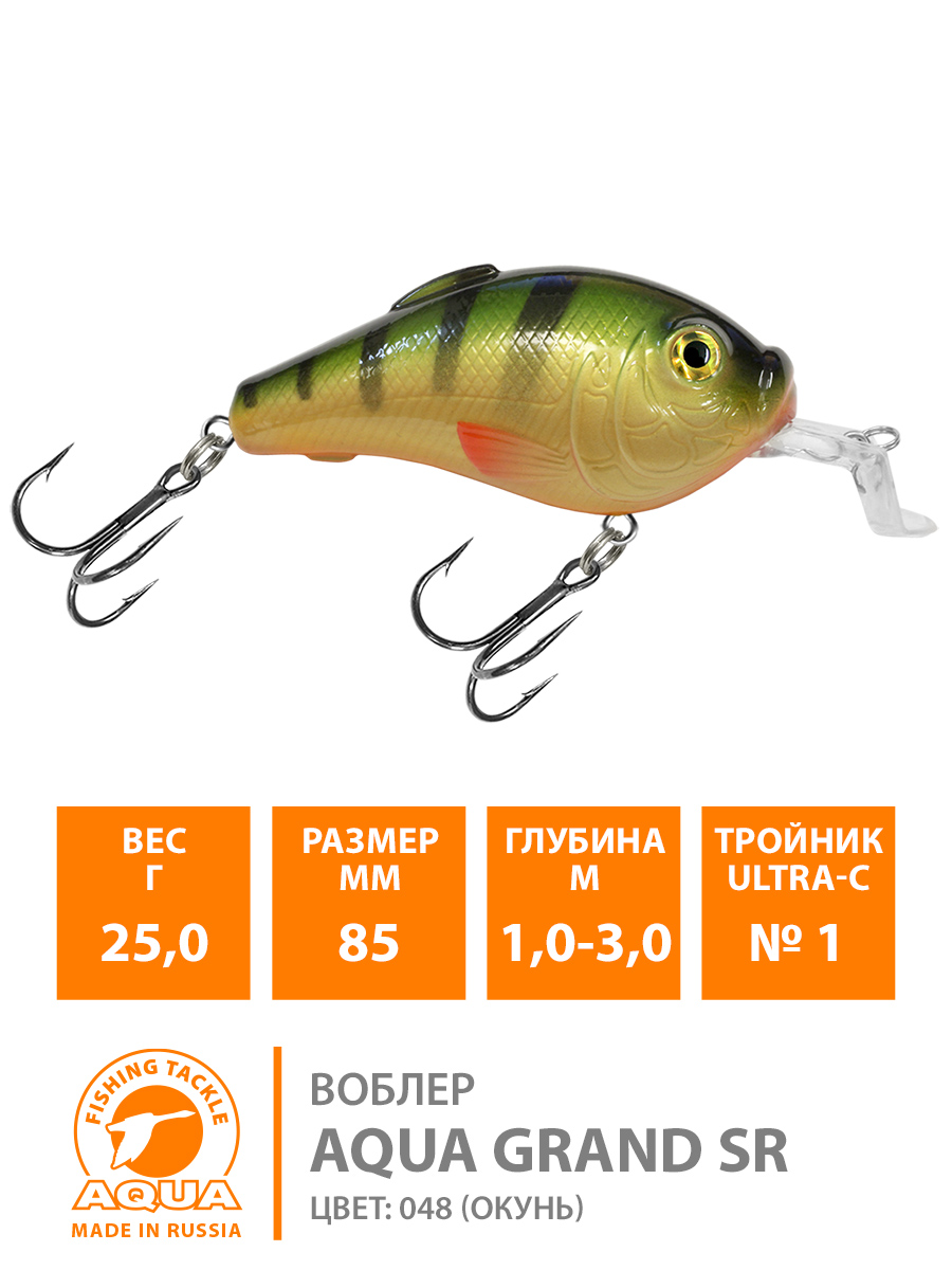 Воблер Aqua Grand SR плавающий 85мм 25гр 1-3м цвет 048 (Окунь)