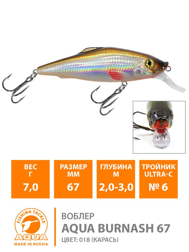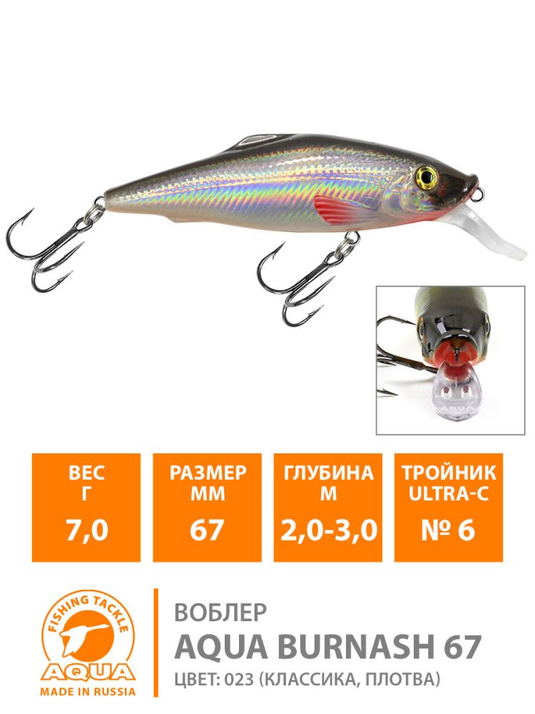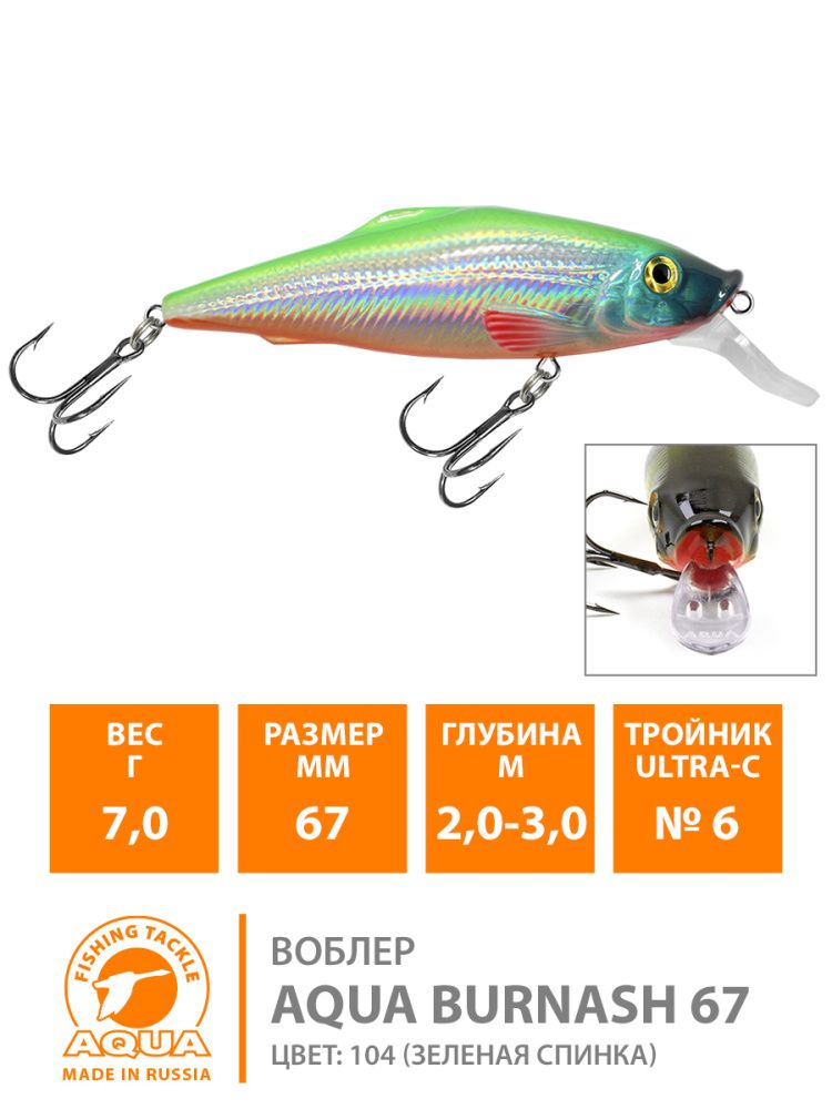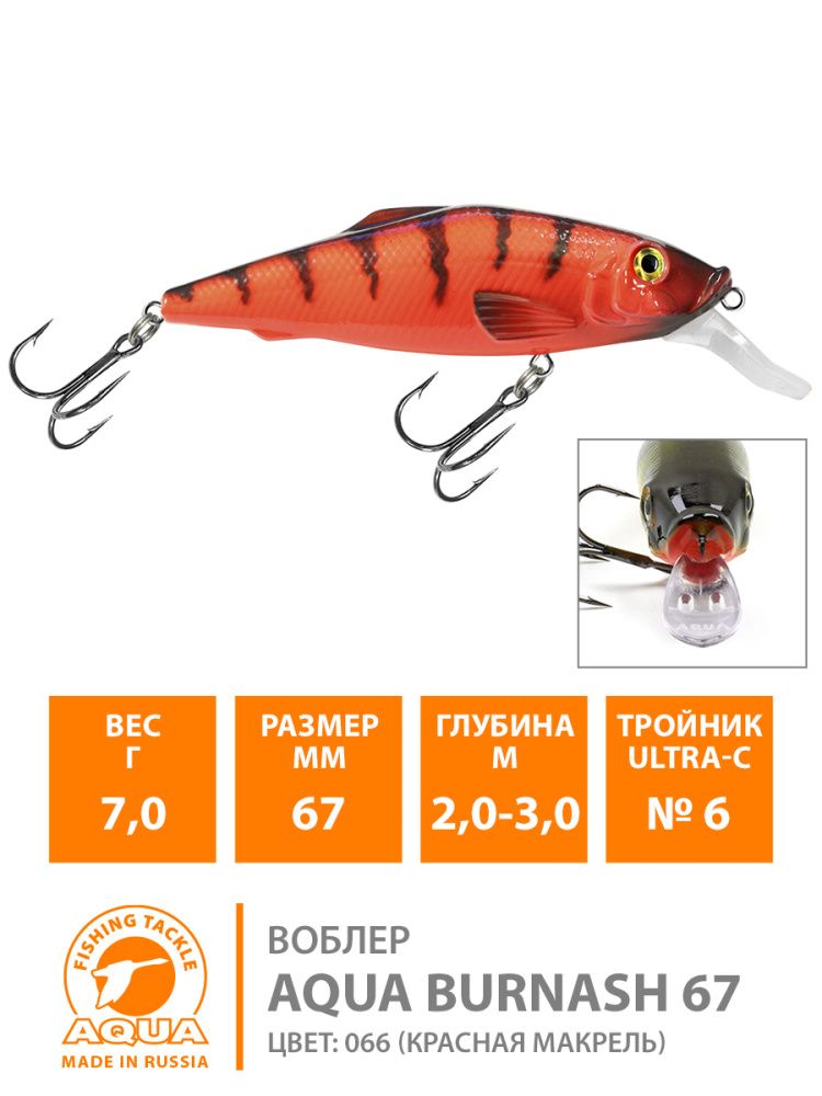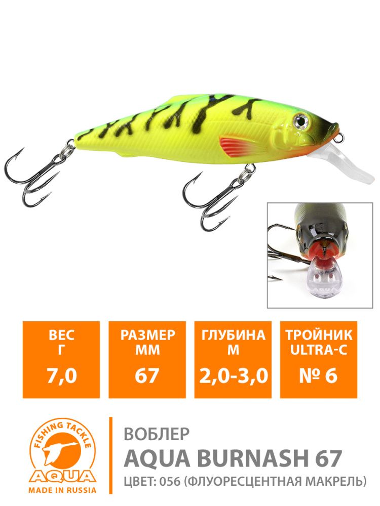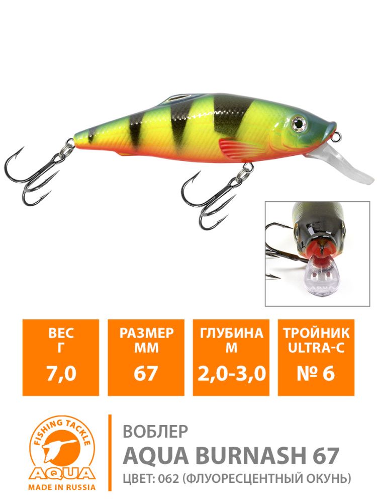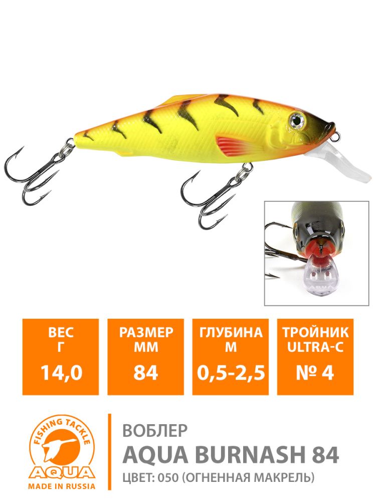 Воблер Aqua Burnash плавающий 84мм 14гр 0,5-2,5м цвет 062 (флуоресцентный Окунь)