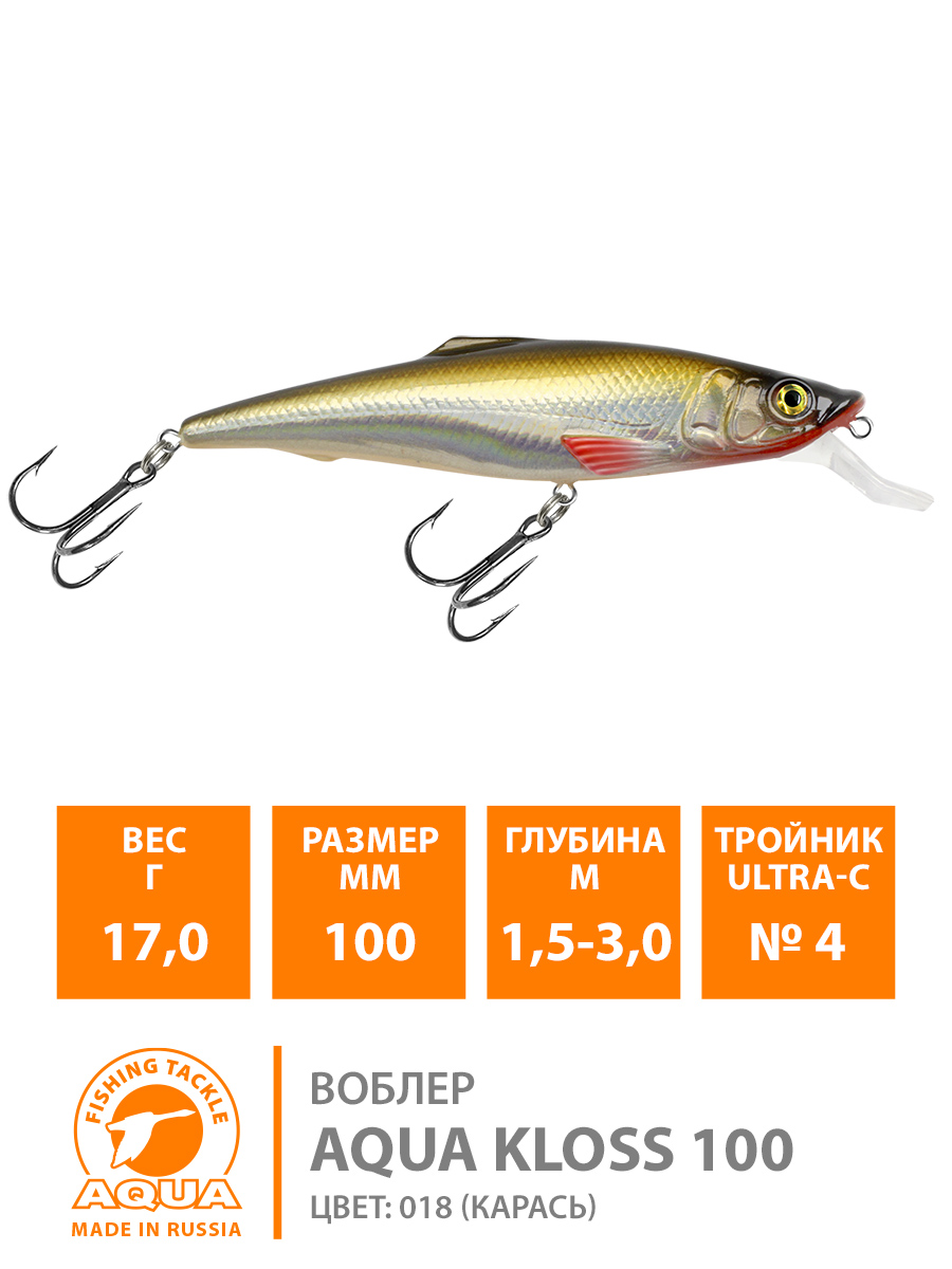 Воблер Aqua Kloss плавающий 100мм 17гр 1,5-3м цвет 018 (Карась)