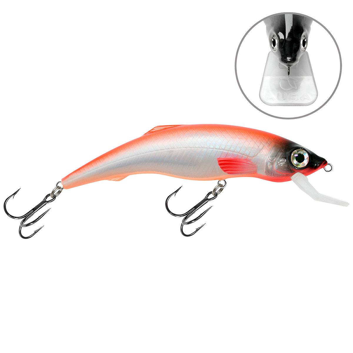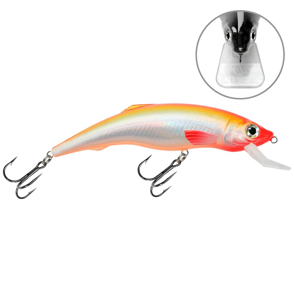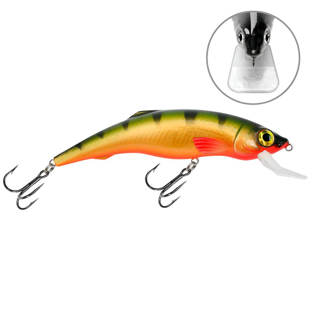 Корпус воблера и заглубляющая лопасть (язычок) изготовлены из ударопрочного пластика неподвластного зубам хищной рыбы и выдерживающая удары о донные камни при проводке.