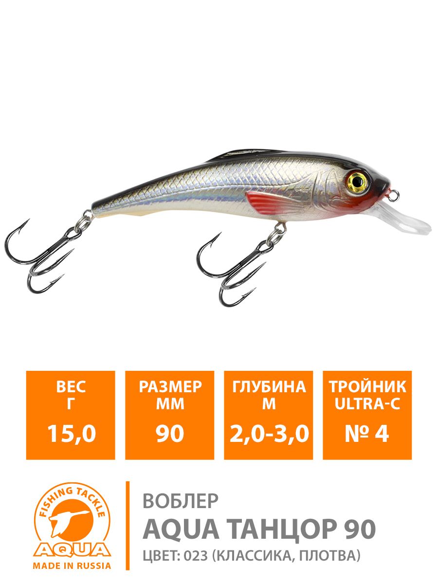 Воблер Aqua Танцор плавающий 100мм 18гр 1,5-2,5м цвет 023 (классика, Плотва)