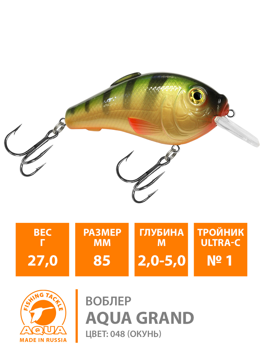 Воблер Aqua Grand плавающий 85мм 27гр 2-5м цвет 048 (Окунь)