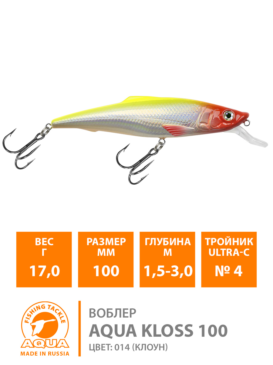 Воблер Aqua Kloss плавающий 100мм 17гр 1,5-3м цвет 014 (клоун)