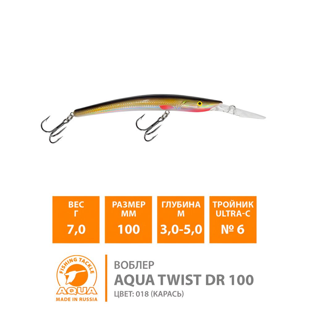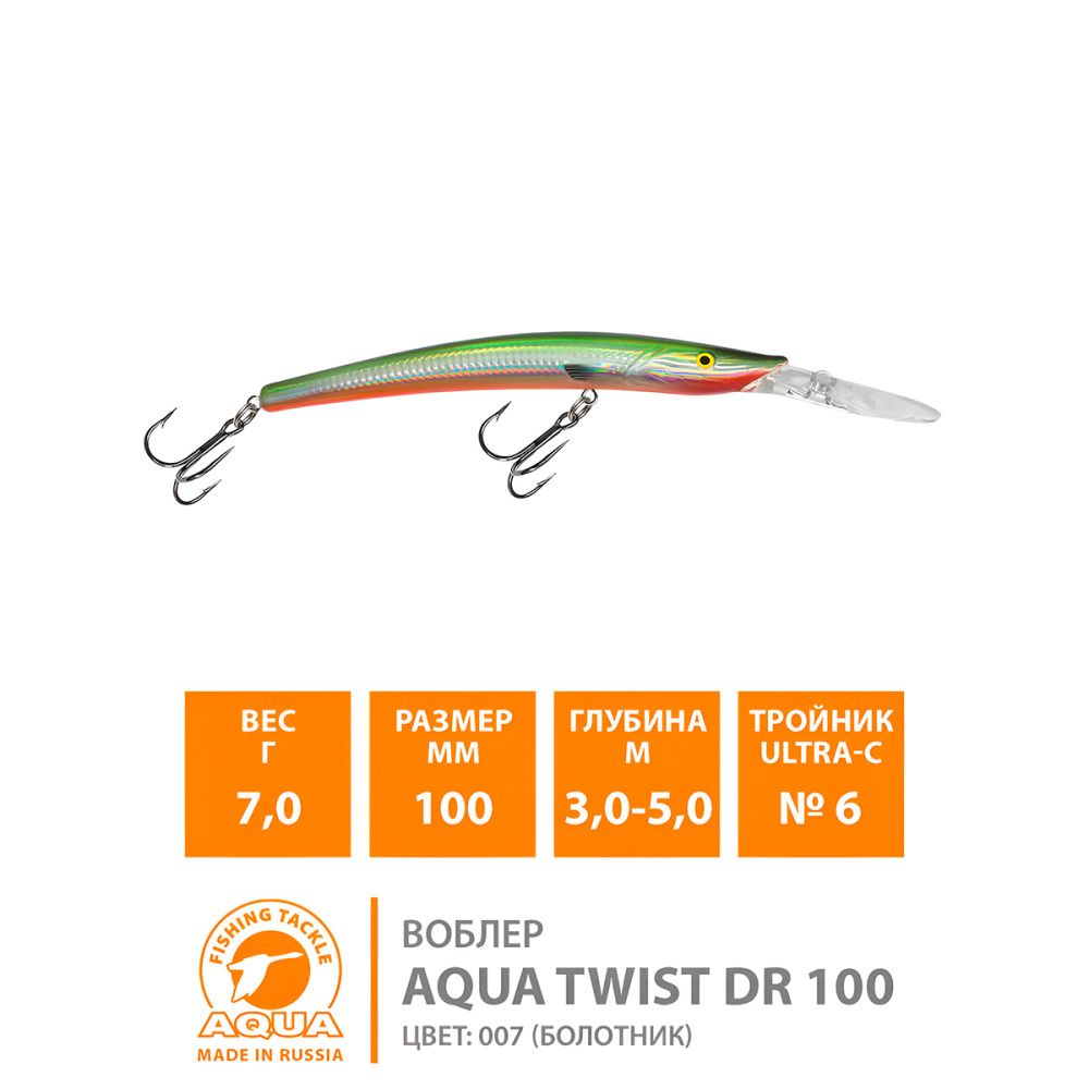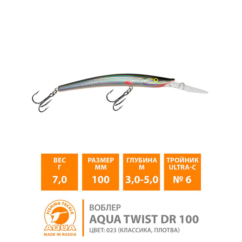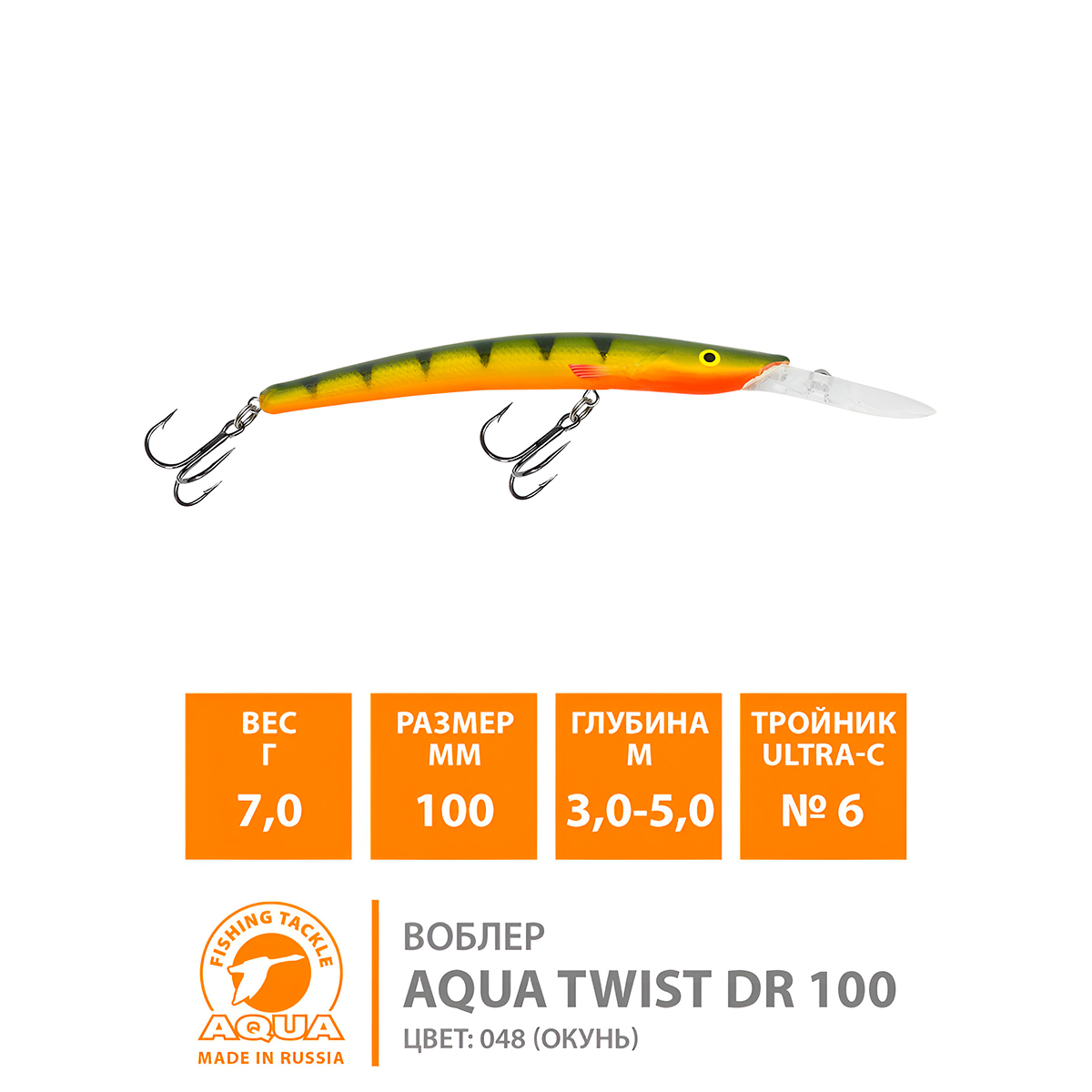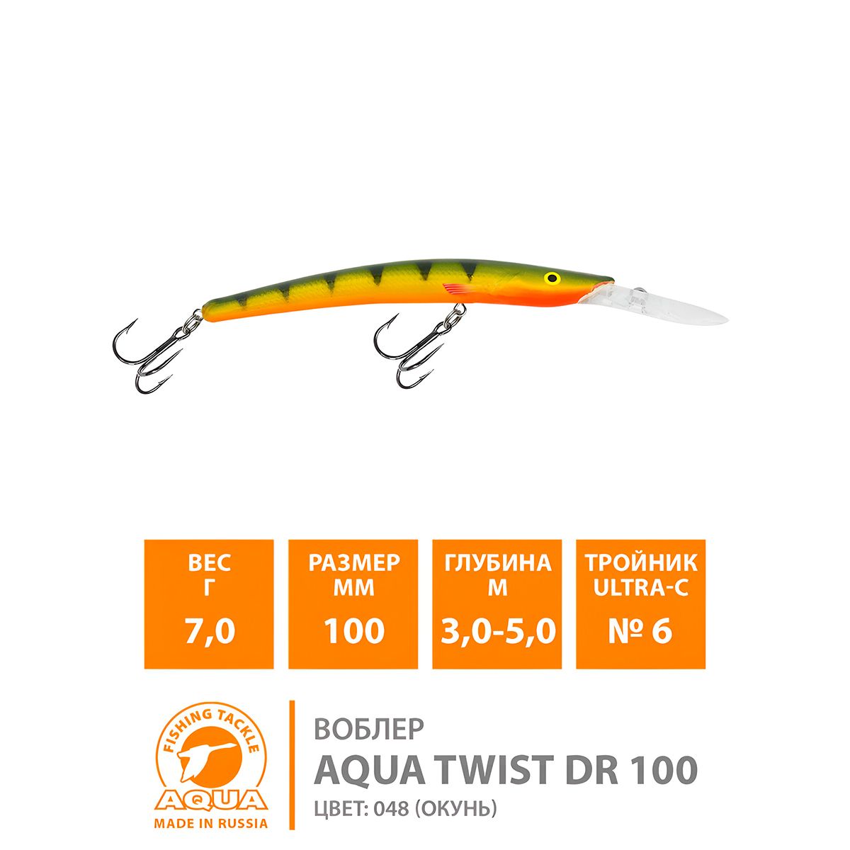 Воблер Aqua TWist DR плавающий 100мм 7гр 3-5м цвет 048 (Окунь)