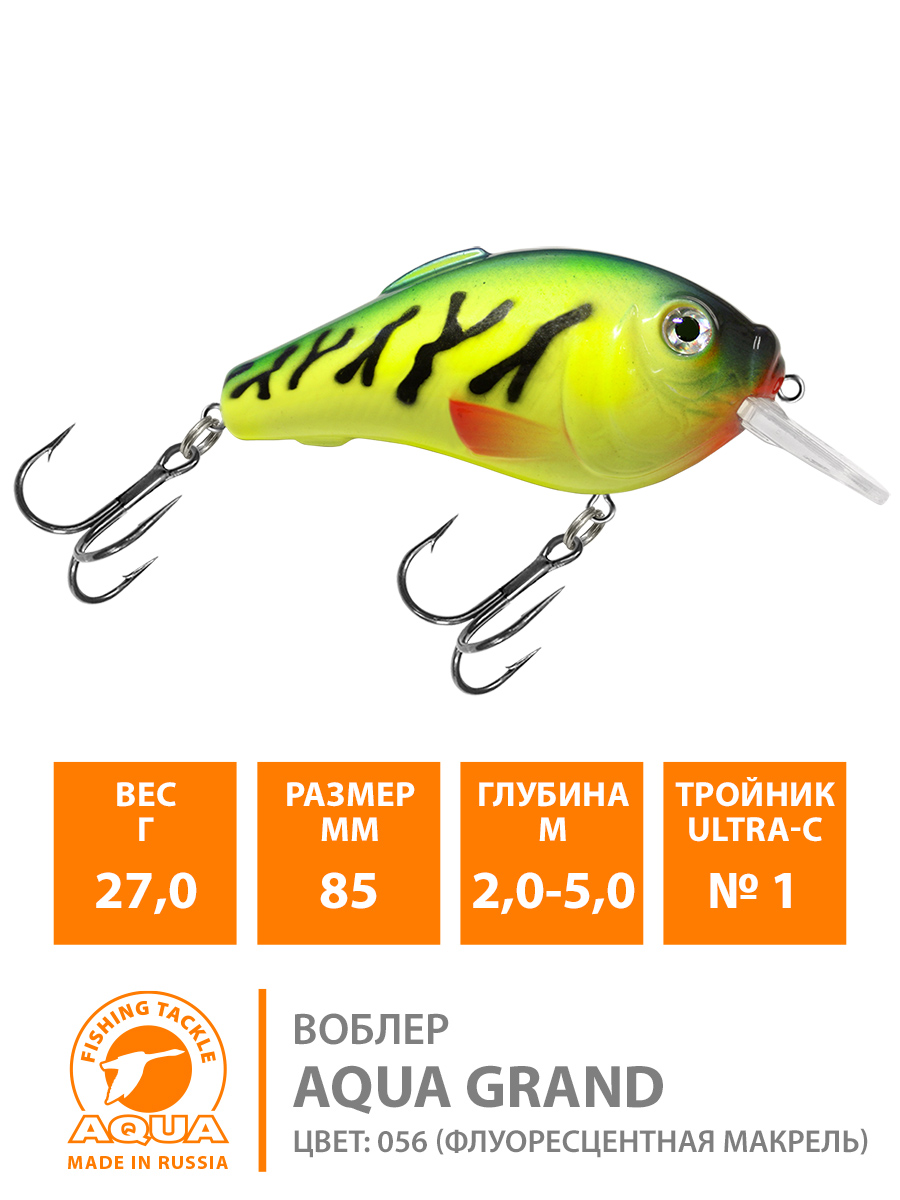 Воблер Aqua Grand плавающий 85мм 27гр 2-5м цвет 056 (флуоресцентная макрель)