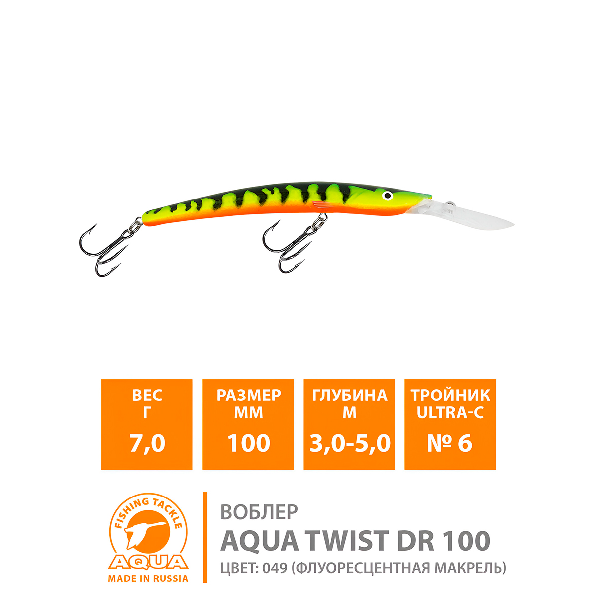 Воблер Aqua TWist DR плавающий 100мм 7гр 3-5м цвет 049 (флуоресцентная макрель)