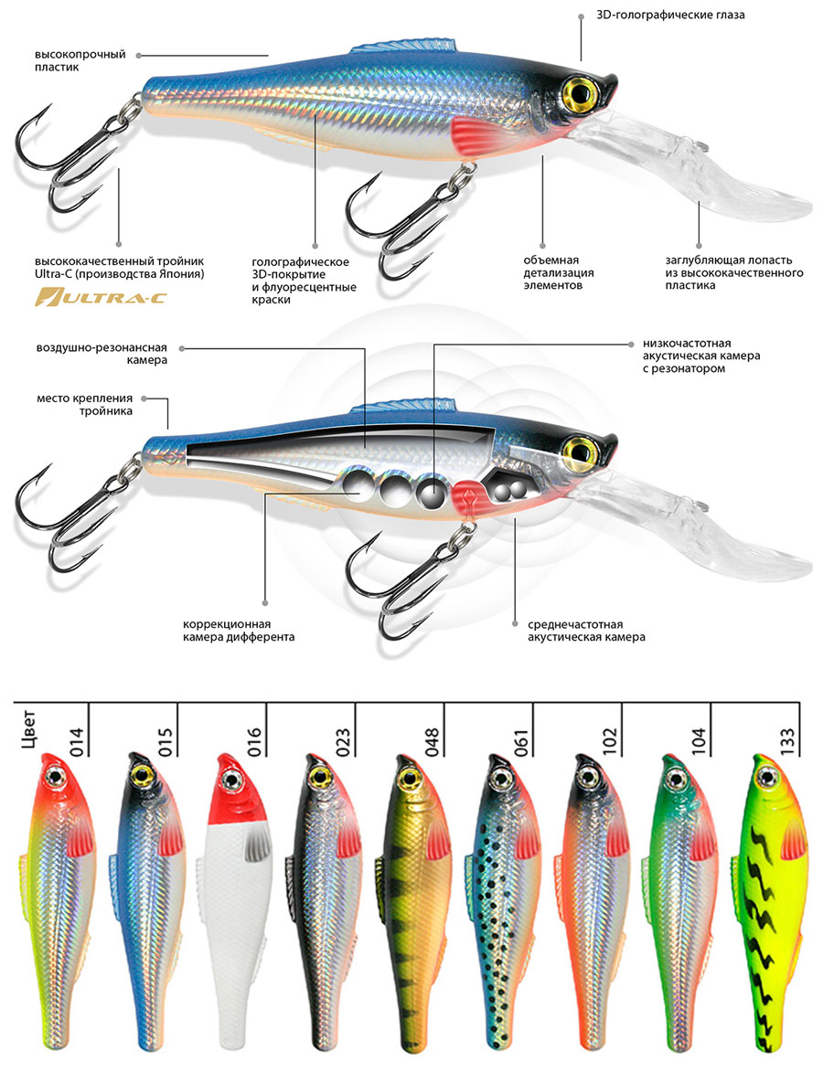 Усиленный корпус приманки уверено противостоит зубам любого хищника «покусившегося» на уловистый воблер.