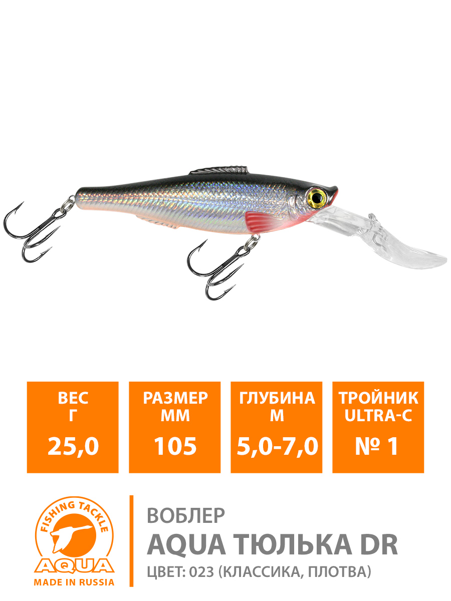Воблер Aqua Тюлька DR плавающий 105мм 25гр 5-7м цвет 023 (классика, Плотва)