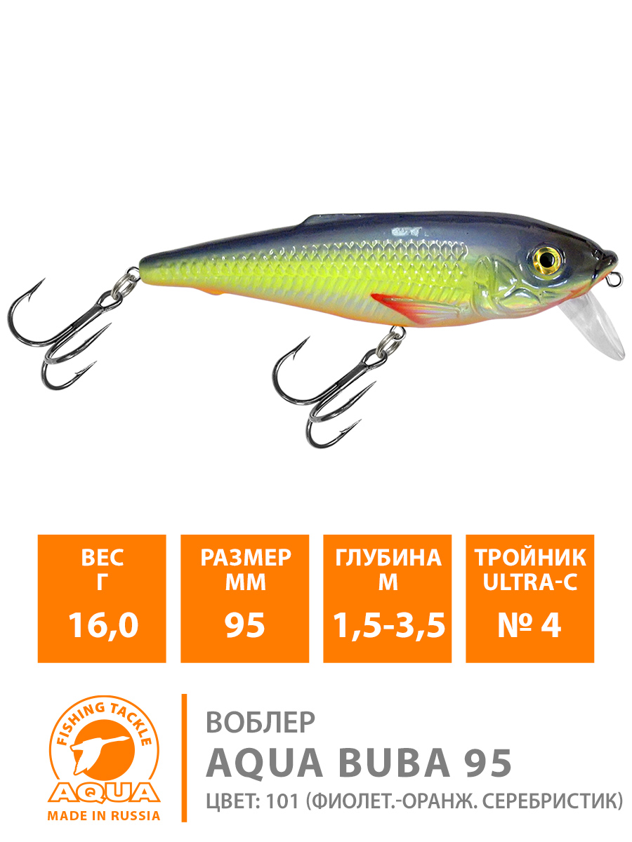 Воблер Aqua Buba плавающий 95мм 16гр 1,5-3,5м цвет 101 (фиолетовый, красный серебристик)