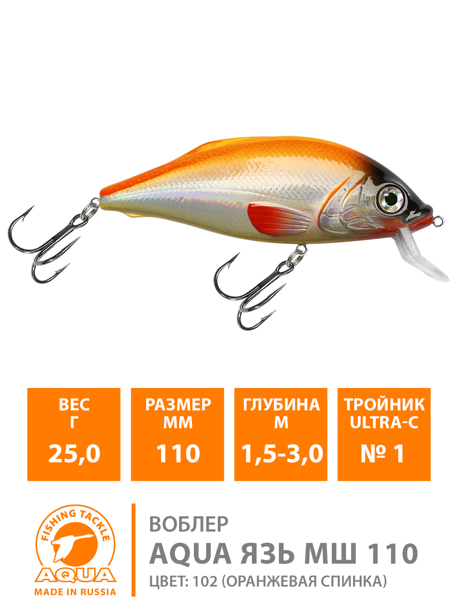 Воблер Aqua Язь-МШ плавающий 110мм 25гр 1,5-3м цвет 102 (оранжевая спинка)