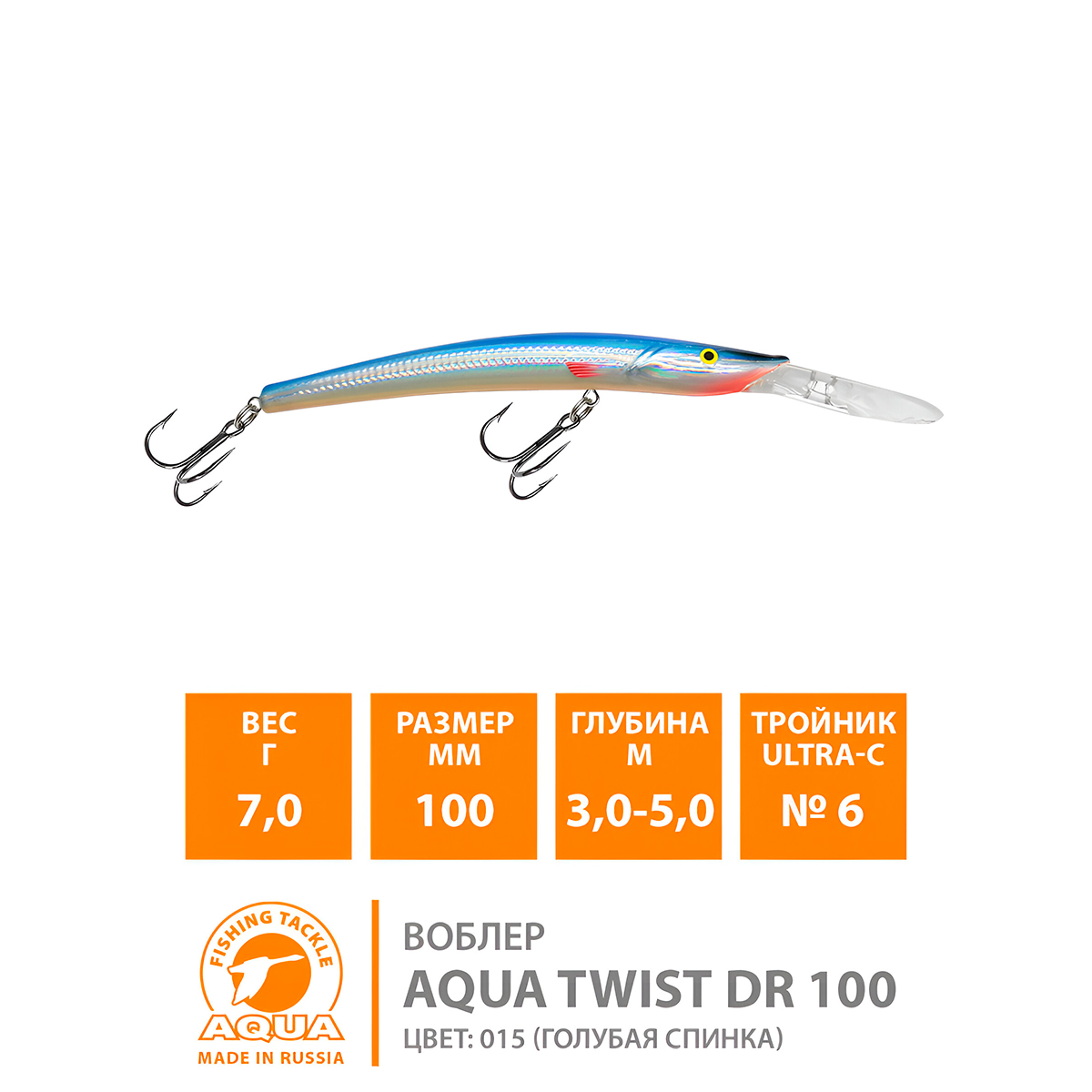 Воблер Aqua TWist DR плавающий 100мм 7гр 3-5м цвет 015 (голубая спинка)