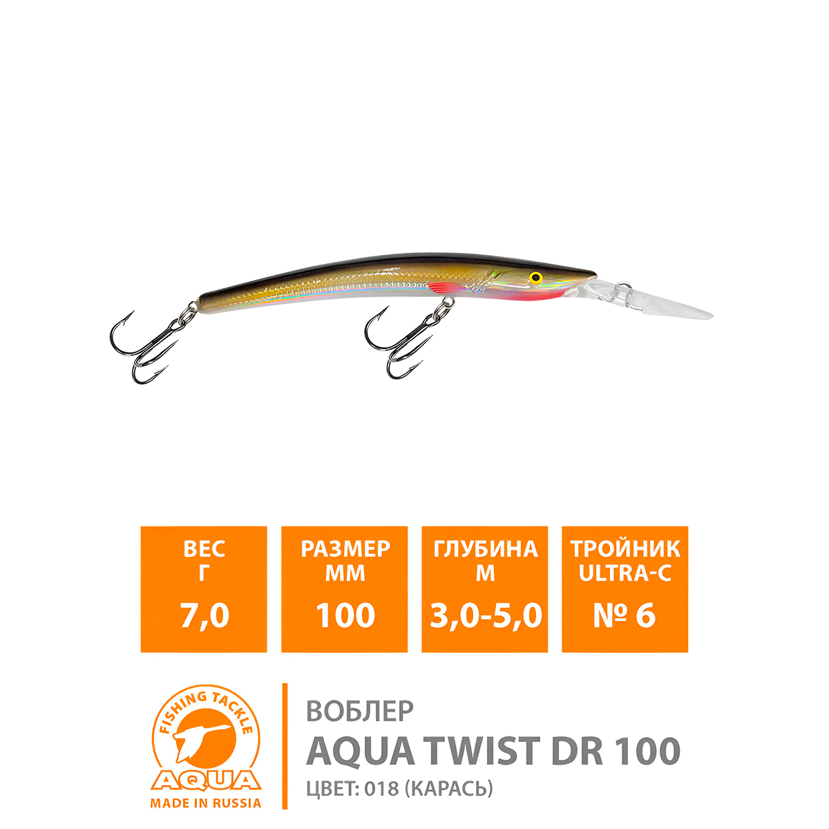 Воблер Aqua TWist DR плавающий 100мм 7гр 3-5м цвет 018 (Карась)