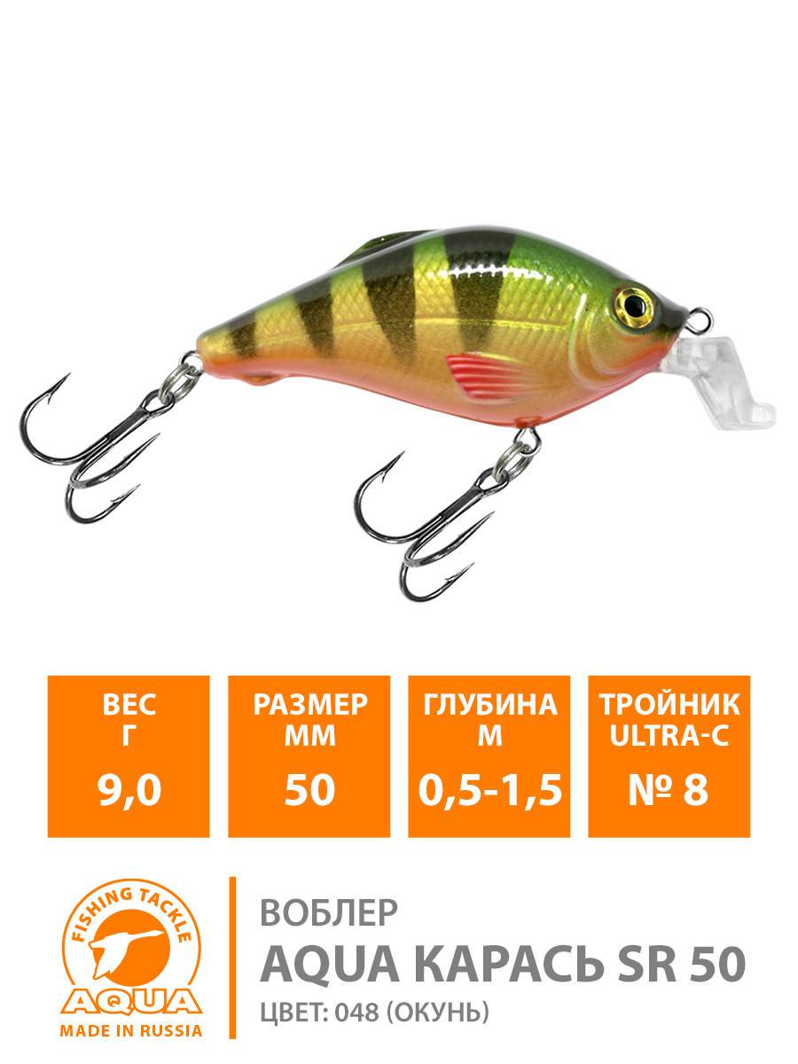 Воблер Aqua Карась SR плавающий 50мм 9гр 0,5-1,5м цвет 048 (Окунь)