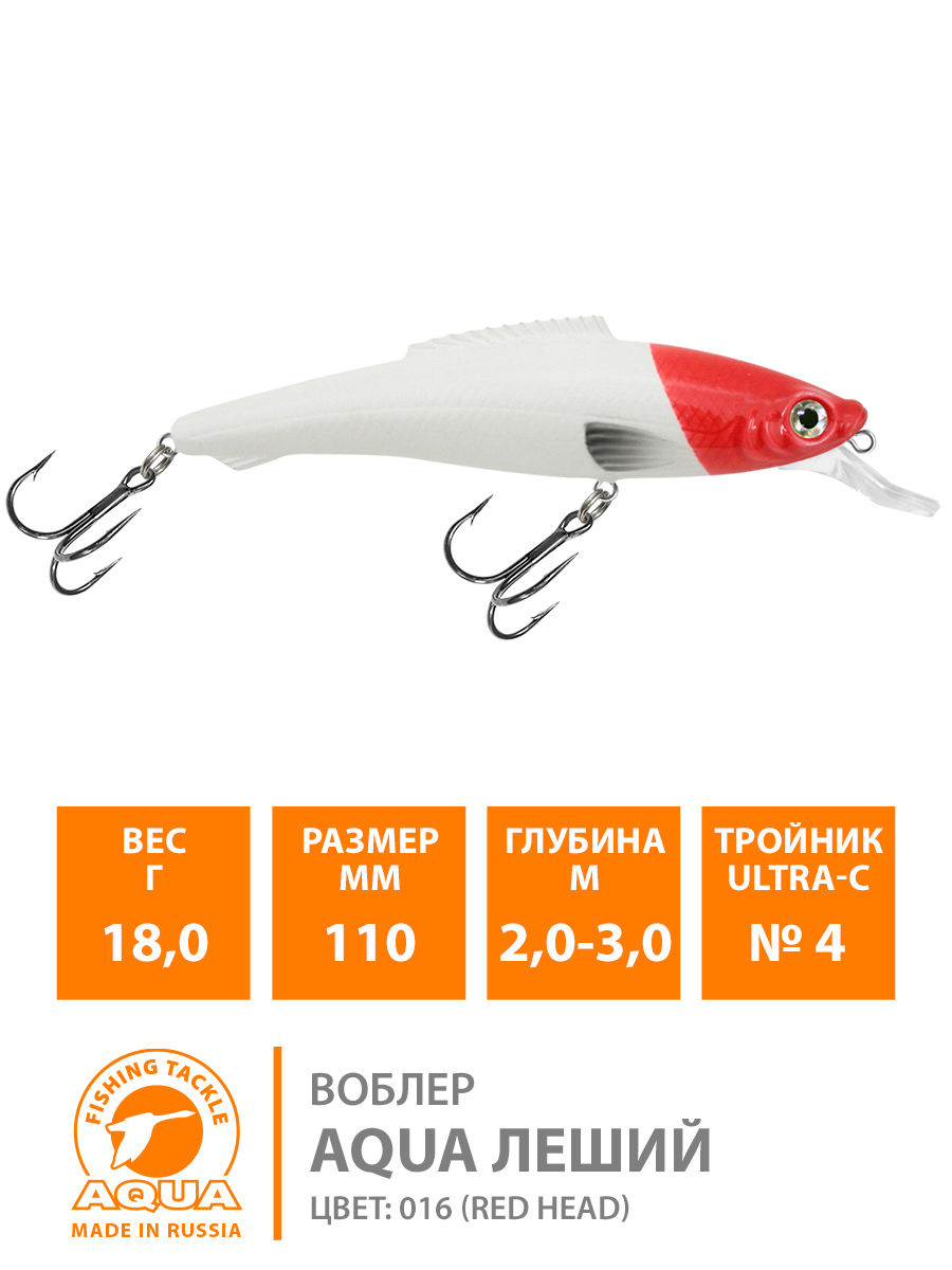 Воблер Aqua Леший плавающий 110мм 18гр 2-3м цвет 016 (red head)