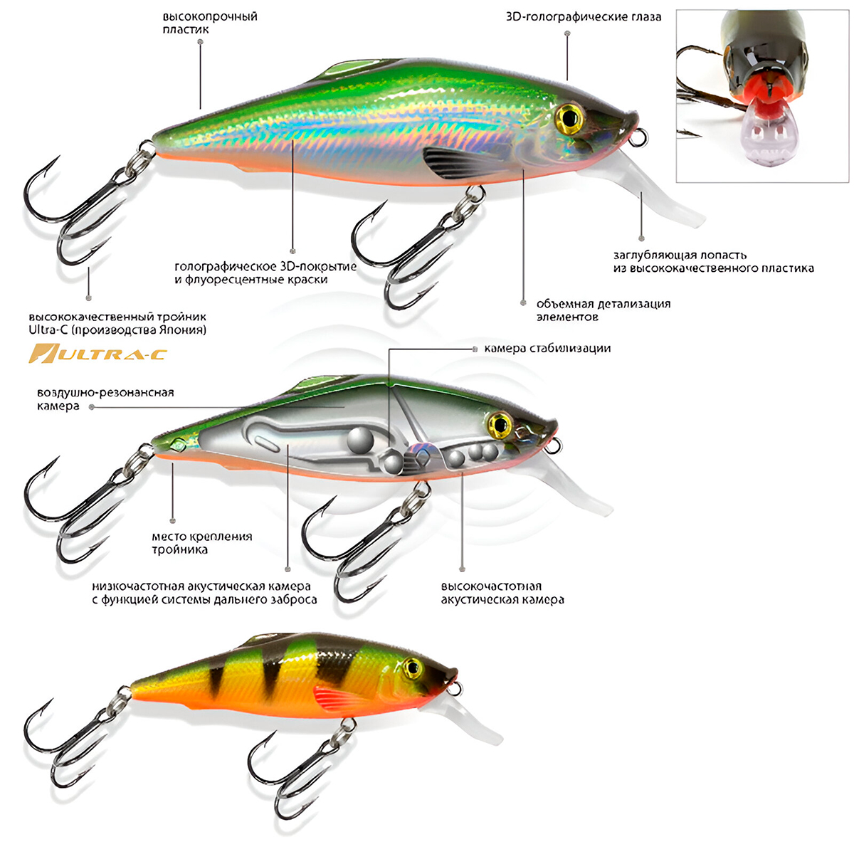 Внутри Burnash в камере стабилизации «в свободном полете» находятся металлические шарики, стабилизирующие игру примаки, не давая ей заваливаться на течении или при быстрой проводке.