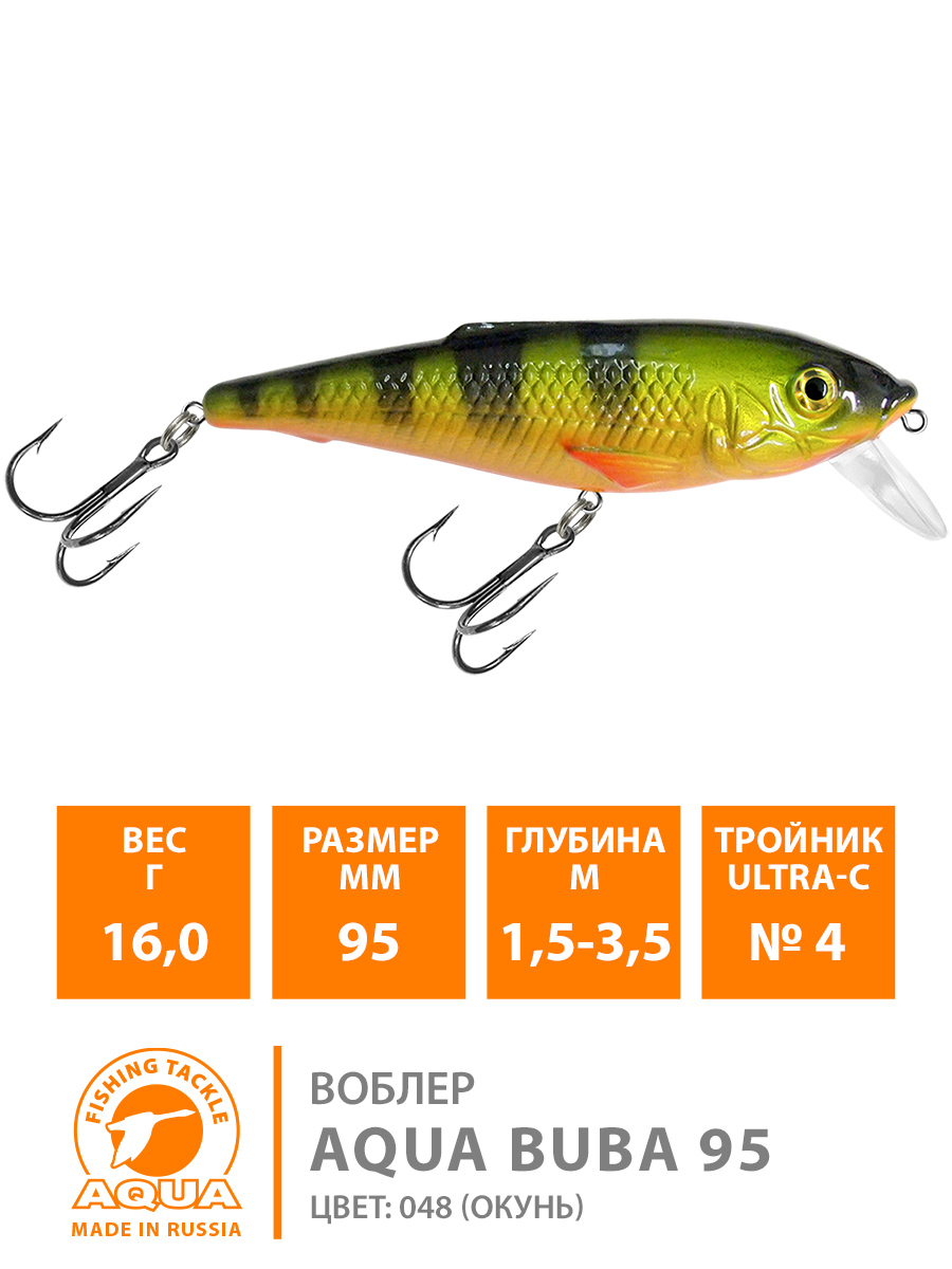 Воблер Aqua Buba плавающий 95мм 16гр 1,5-3,5м цвет 048 (Окунь)