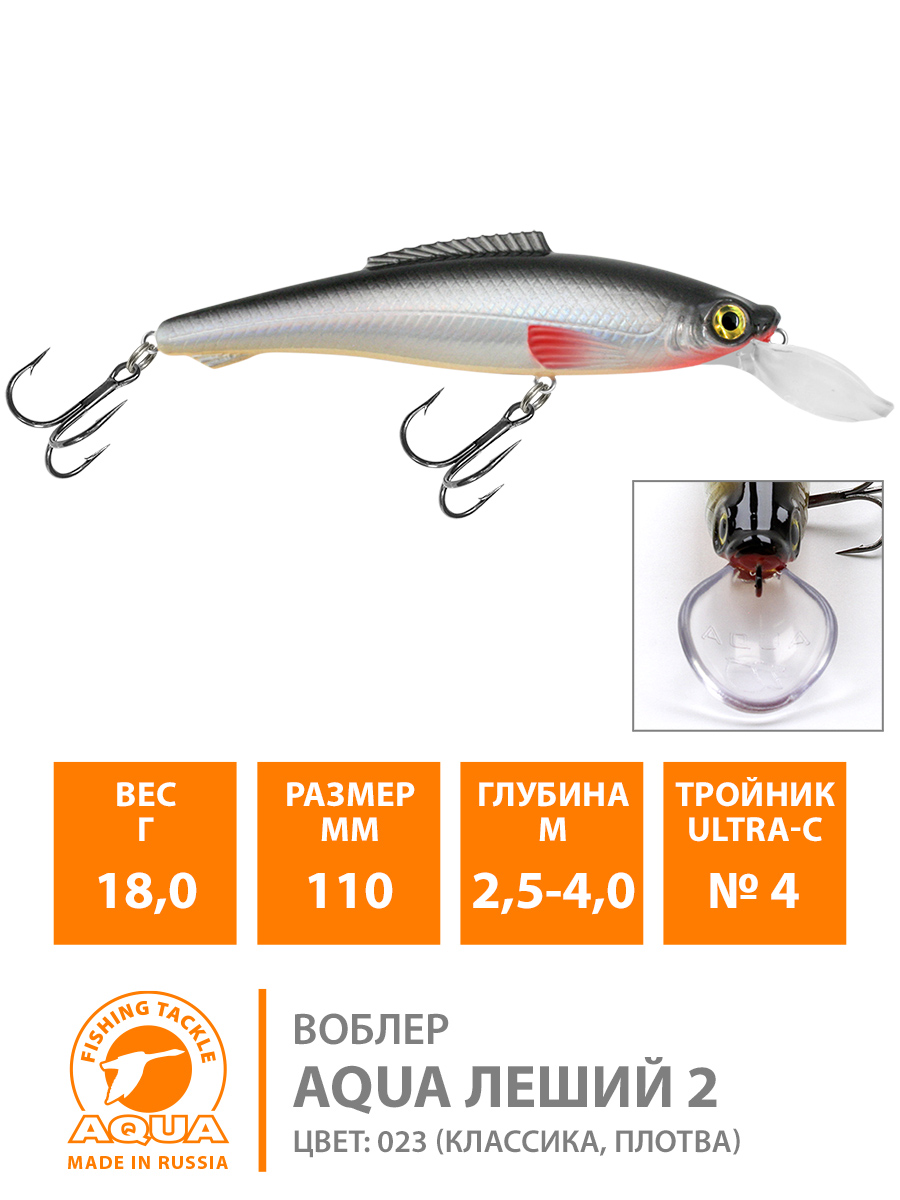 Воблер Aqua Леший-2 плавающий 110мм 18гр 2,5-4м цвет 023 (классика, Плотва)