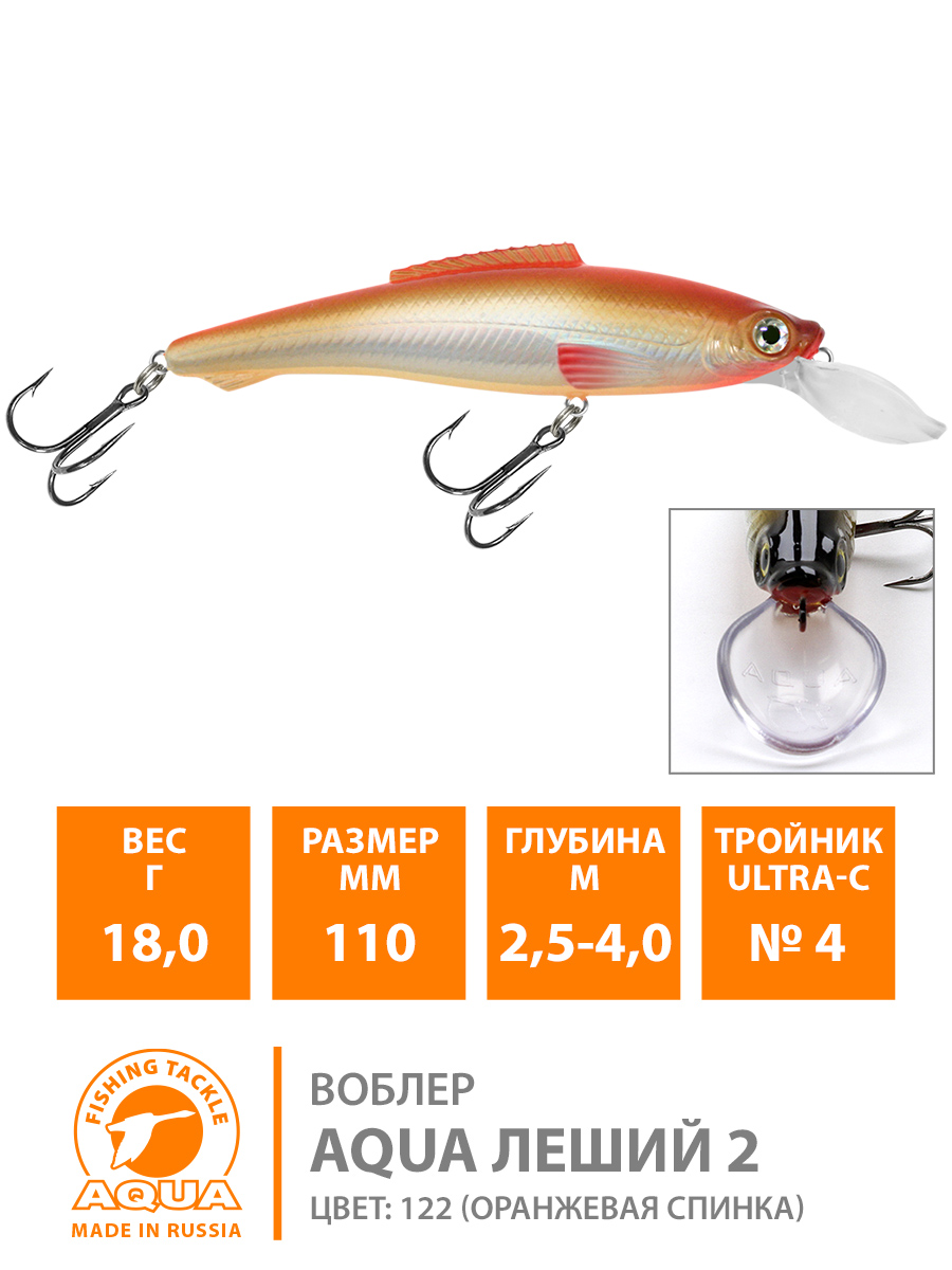 Воблер Aqua Леший-2 плавающий 110мм 18гр 2,5-4м цвет 122 (оранжевая спинка)