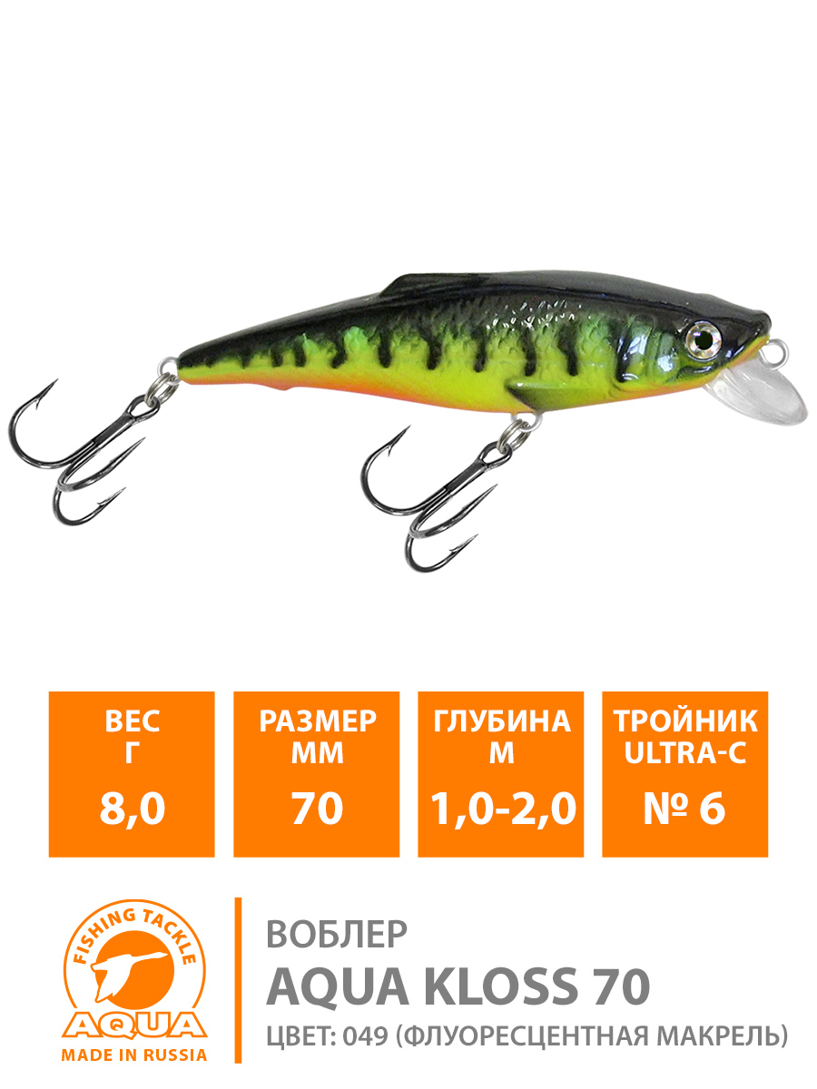 Воблер Aqua Kloss плавающий 70мм 8гр 1-2м цвет 049 (флуоресцентная макрель)