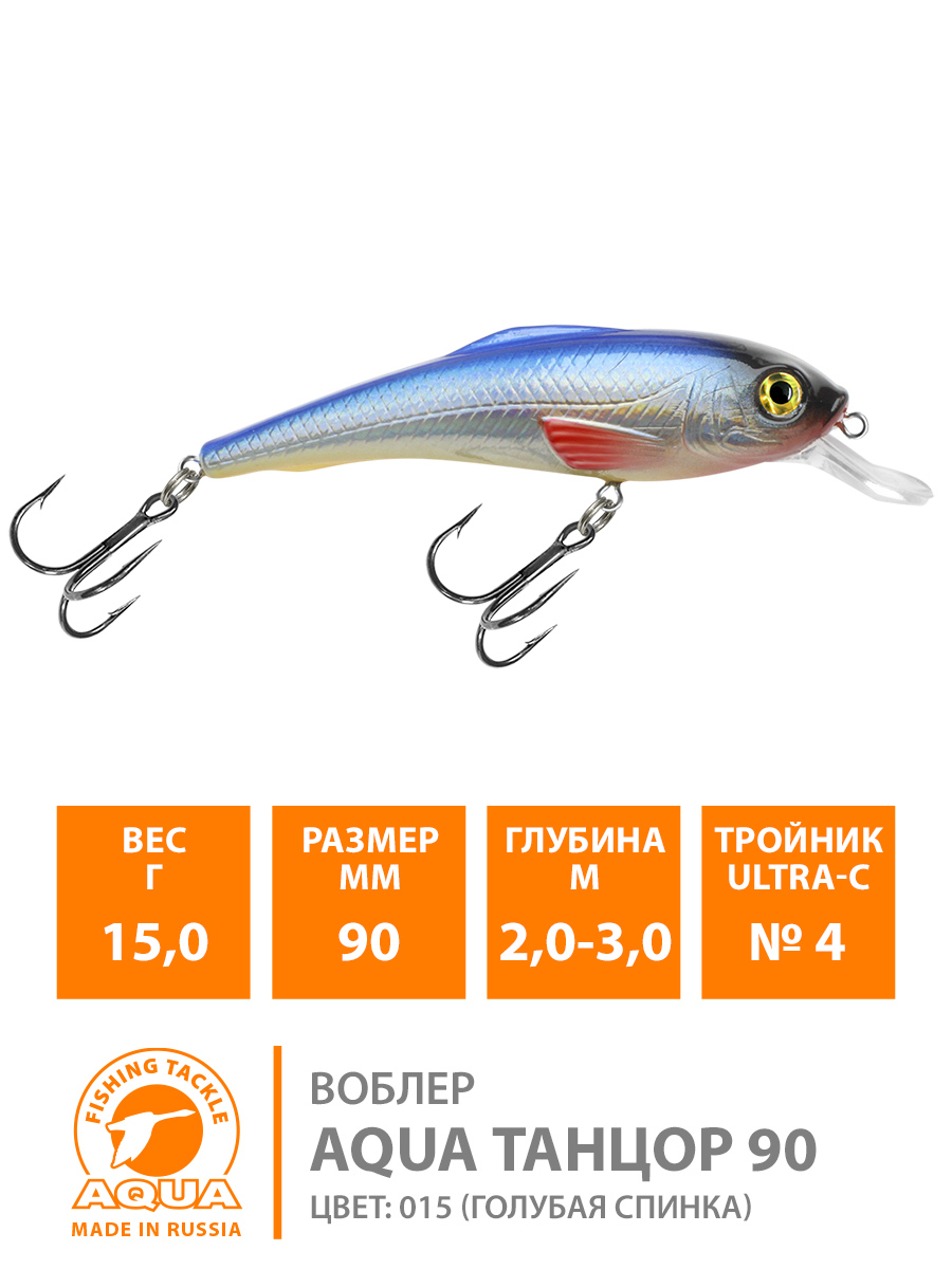 Воблер Aqua Танцор плавающий 100мм 18гр 1,5-2,5м цвет 015 (голубая спинка)