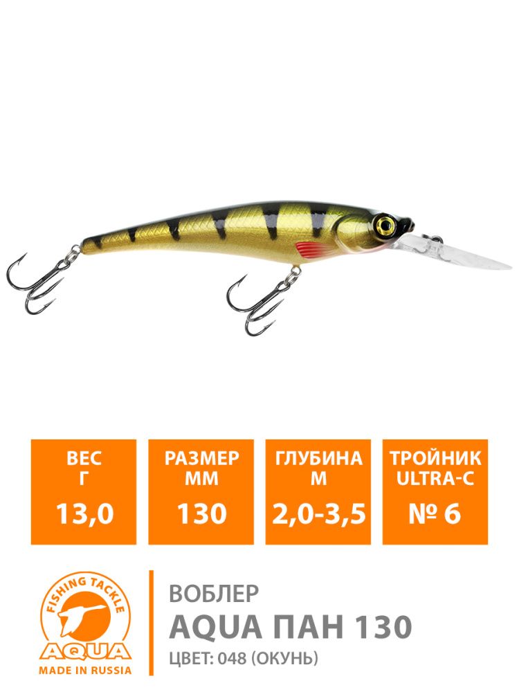 Воблер Aqua Пан плавающий 130мм 13гр 2-3,5м цвет 048 (Окунь)