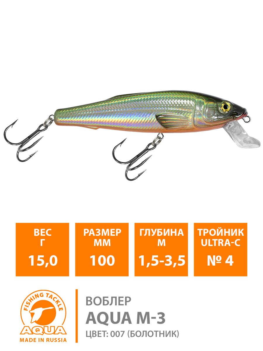 Воблер Aqua M-3 (new) плавающий 100мм 15гр 1,5-3,5м цвет 007 (болотник)