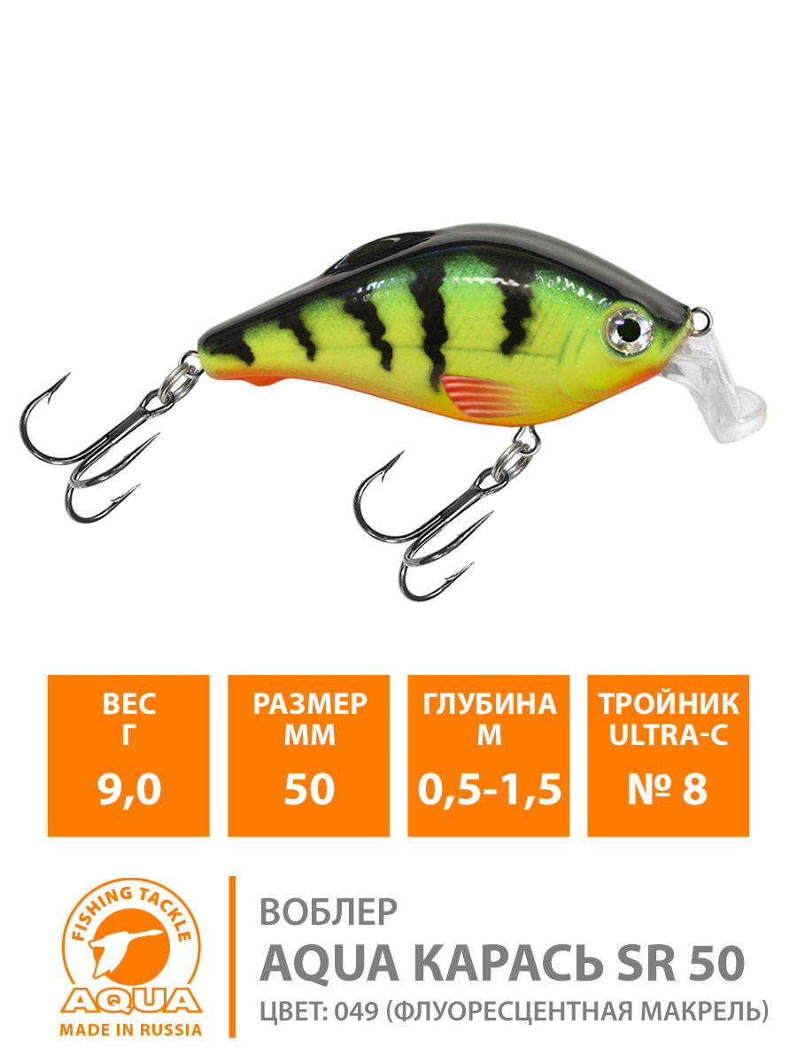 Воблер Aqua Карась SR плавающий 50мм 9гр 0,5-1,5м цвет 049 (флуоресцентная макрель)