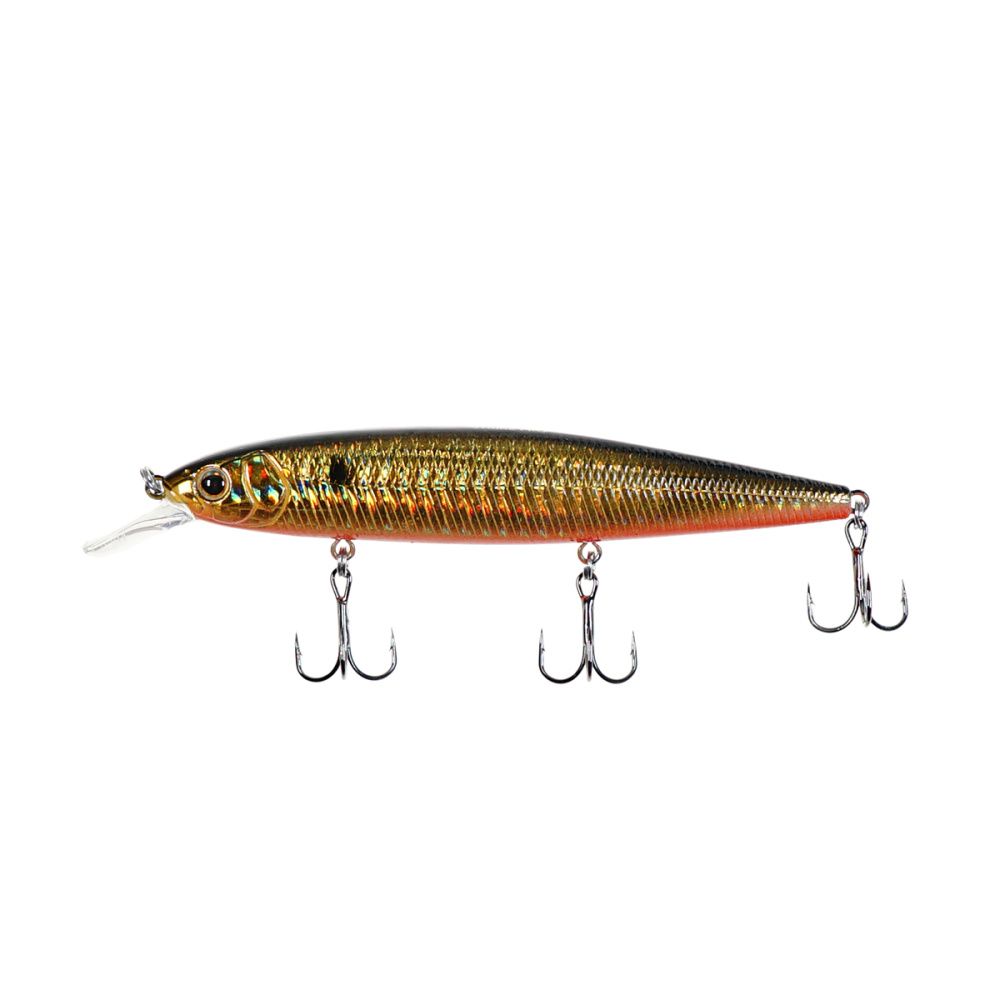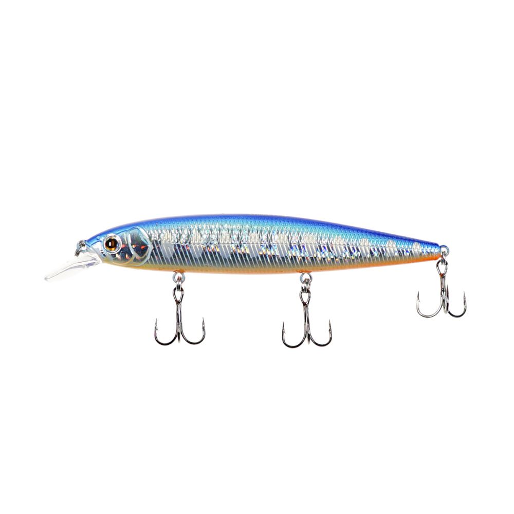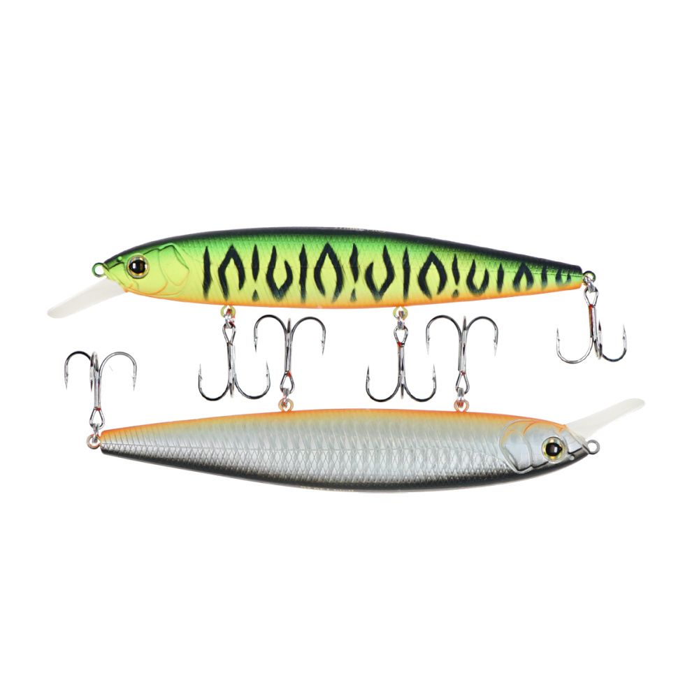 Когда держишь Bold 130SP в руке, не сразу понимаешь, чем же он так хорош? Сюрприз, оказывается, расположен внутри. Передний шарик размещен в голове приманки он может передвигаться только в плоскости от одной жаберной крышки к другой. В следующем отделение воблера расположены сразу 5 мелких металлических шариков, которые выполняют роль высокочастотной погремушки. За передним тройником расположен тяжелый металлический шарик, он и является основным механизмом, так называемого дальнего заброса. В момент заброса этот шарик перемещается в хвост приманки, а с началом подмотки возвращается обратно. Следующие два шарика расположены