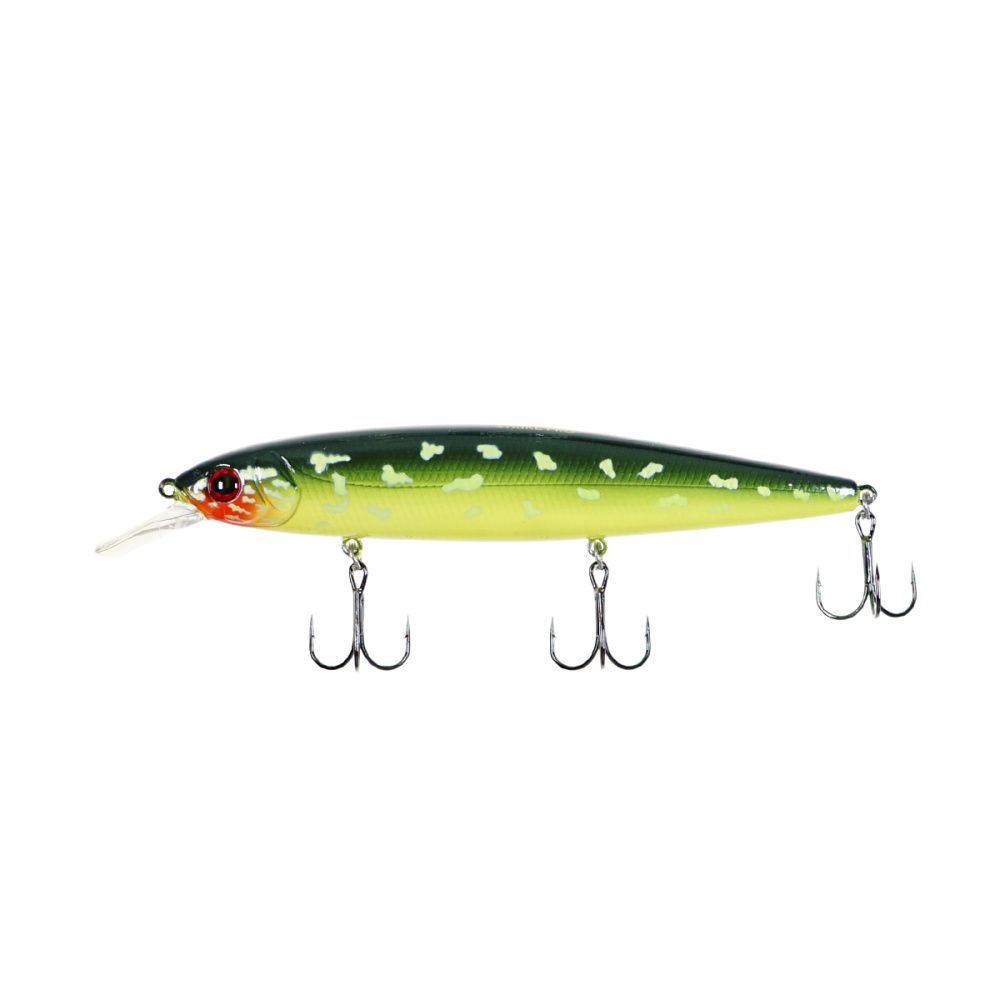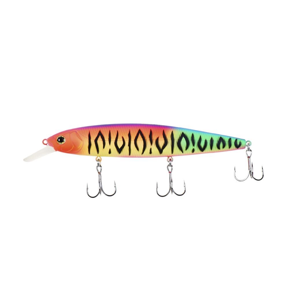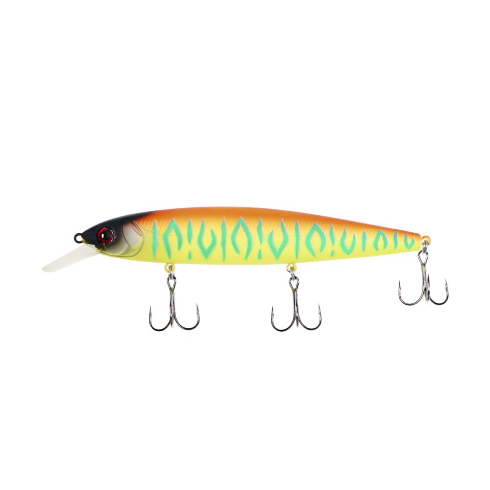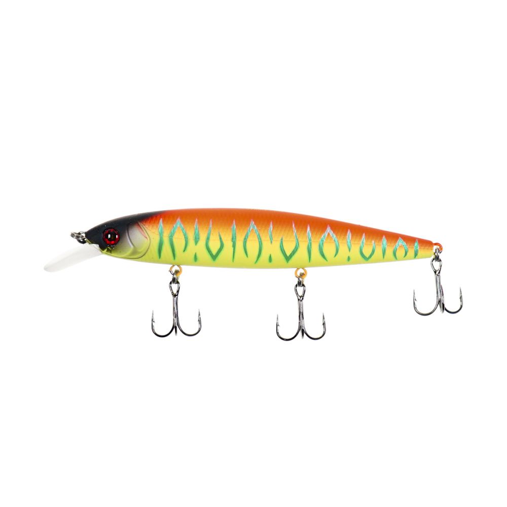 Когда держишь Bold 130SP в руке, не сразу понимаешь, чем же он так хорош? Сюрприз, оказывается, расположен внутри. Передний шарик размещен в голове приманки он может передвигаться только в плоскости от одной жаберной крышки к другой. В следующем отделение воблера расположены сразу 5 мелких металлических шариков, которые выполняют роль высокочастотной погремушки. За передним тройником расположен тяжелый металлический шарик, он и является основным механизмом, так называемого дальнего заброса. В момент заброса этот шарик перемещается в хвост приманки, а с началом подмотки возвращается обратно. Следующие два шарика расположены